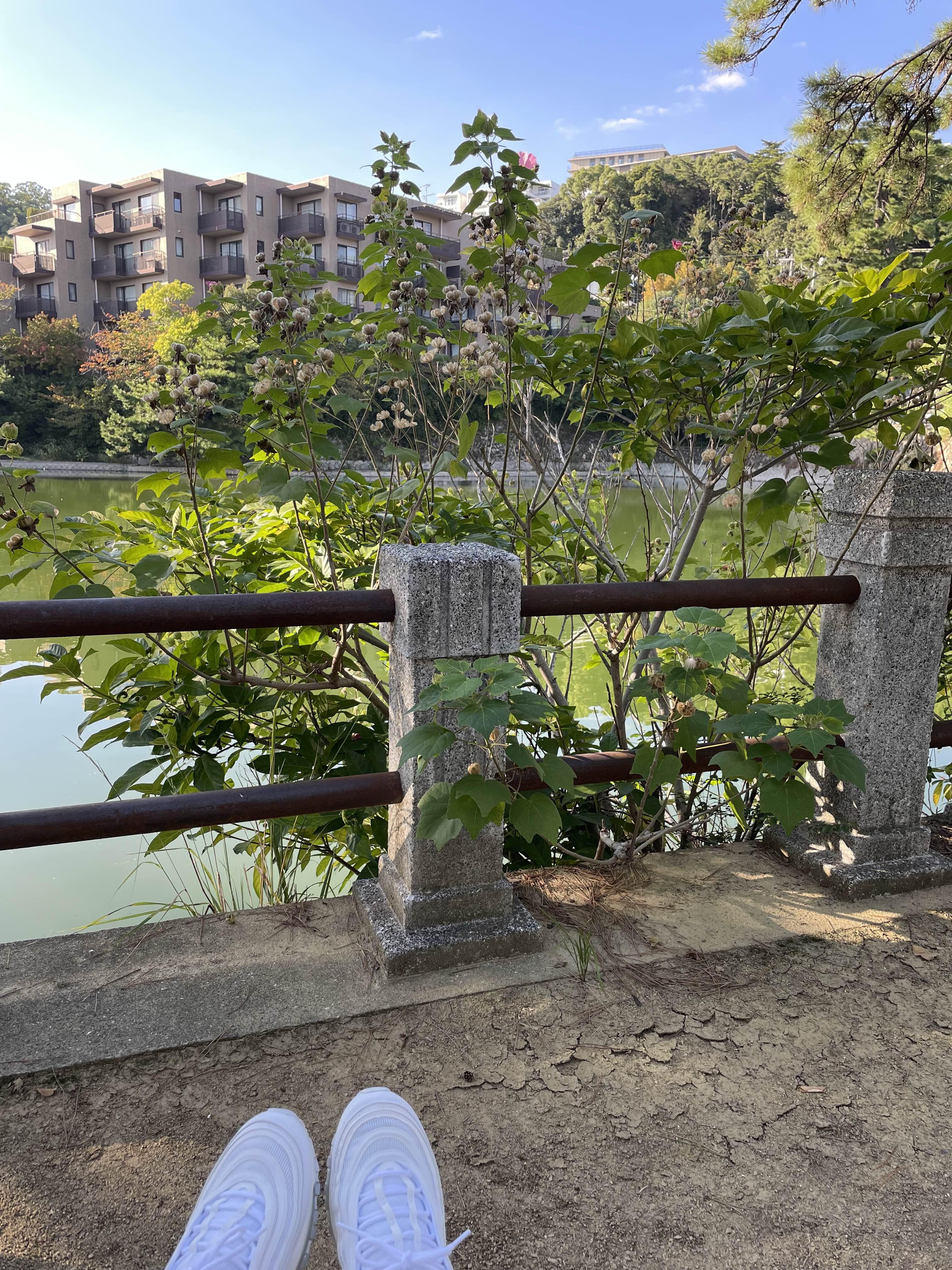 주말에 산책하러 한큐 미카게 걸어가서 공원에서 낚시 하는 사람들 구경하고 벤치에 앉아서 쉬고 그랬다.