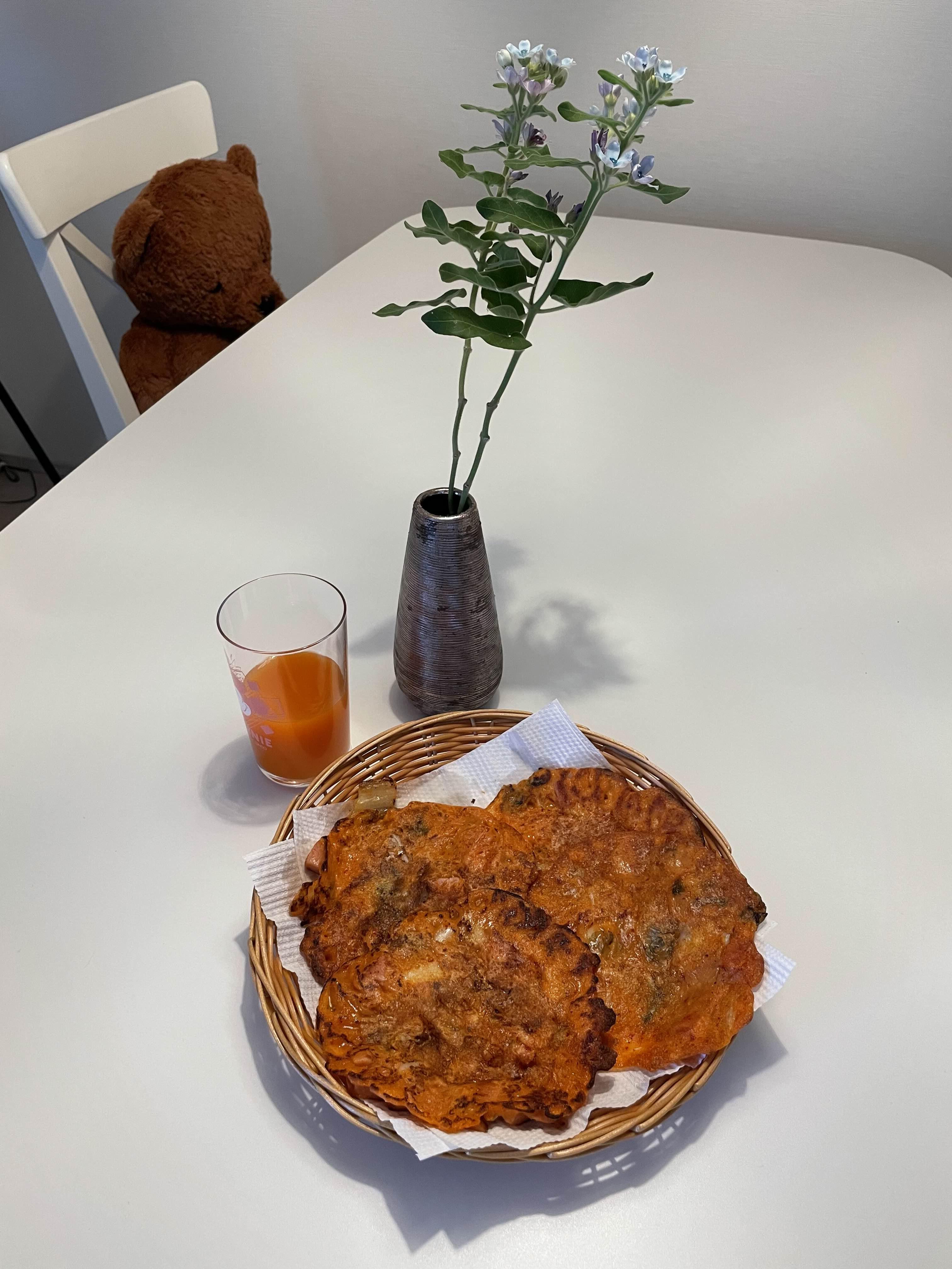 그리고 나서 다음날 왜인지 김치전이 너무 먹고 싶어서 아침부터 김치부침개 부쳐 먹었다.
