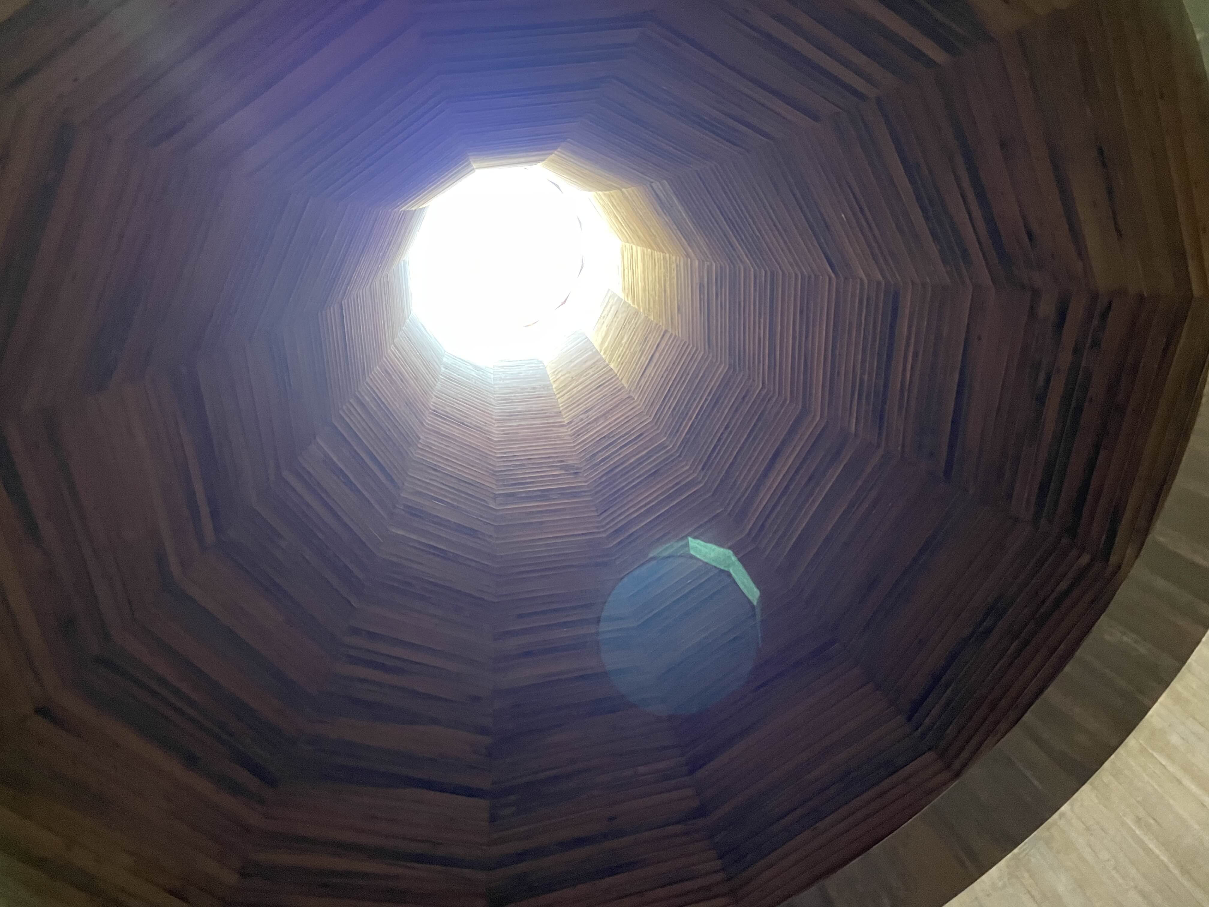 아래로 내려가서 벤치에 앉아 위를 올려보면 작은 구멍으로 빛이 들어 온다.