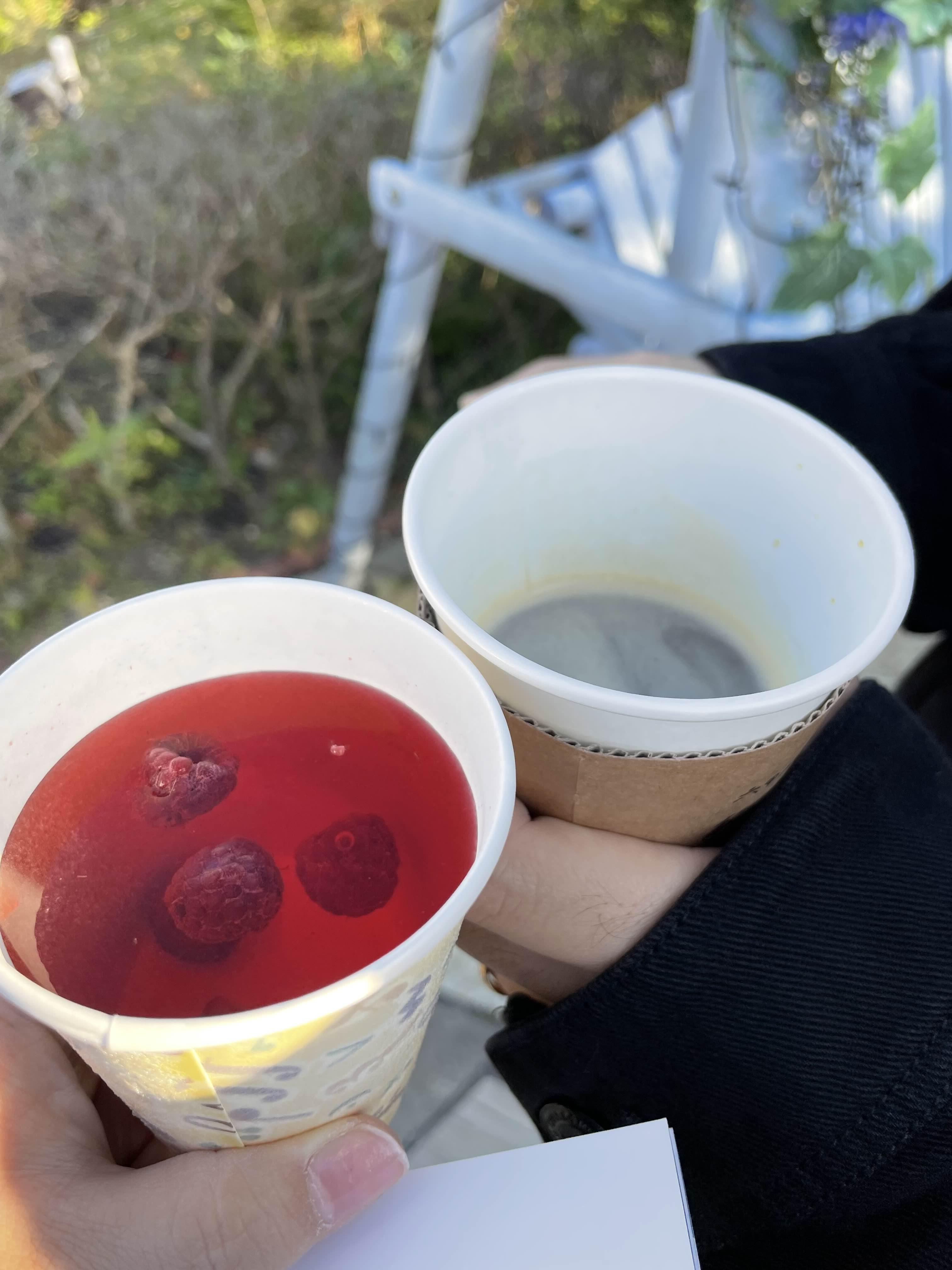 날씨가 추웠어서 따뜻한 거 마시고 내려가려고 카페에서 커피와 따뜻한 라즈베리를 시켰다.