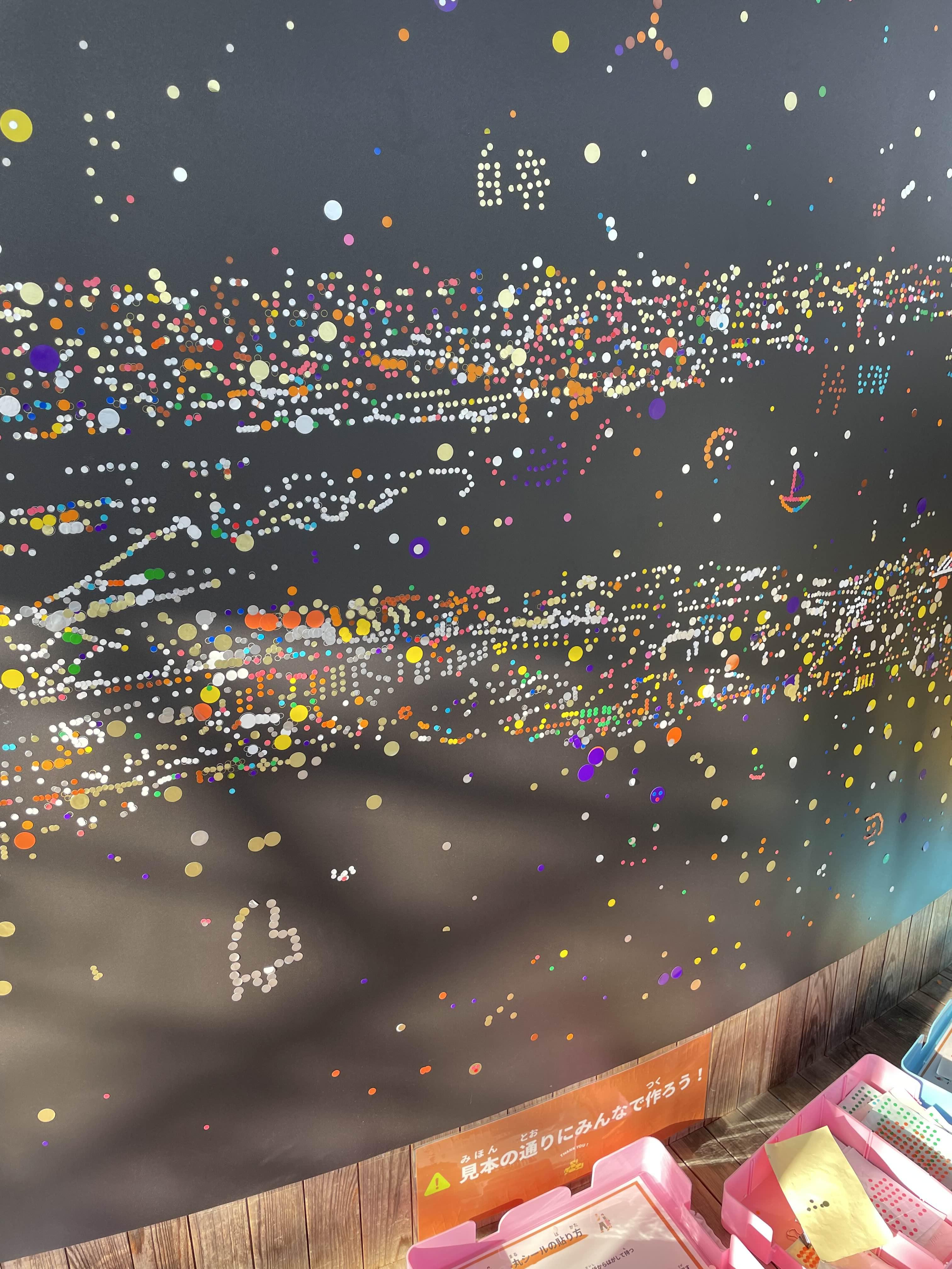 벽면 한쪽에 동그라미 안에 준비된 스티커를 붙이도록 되어 있었는데