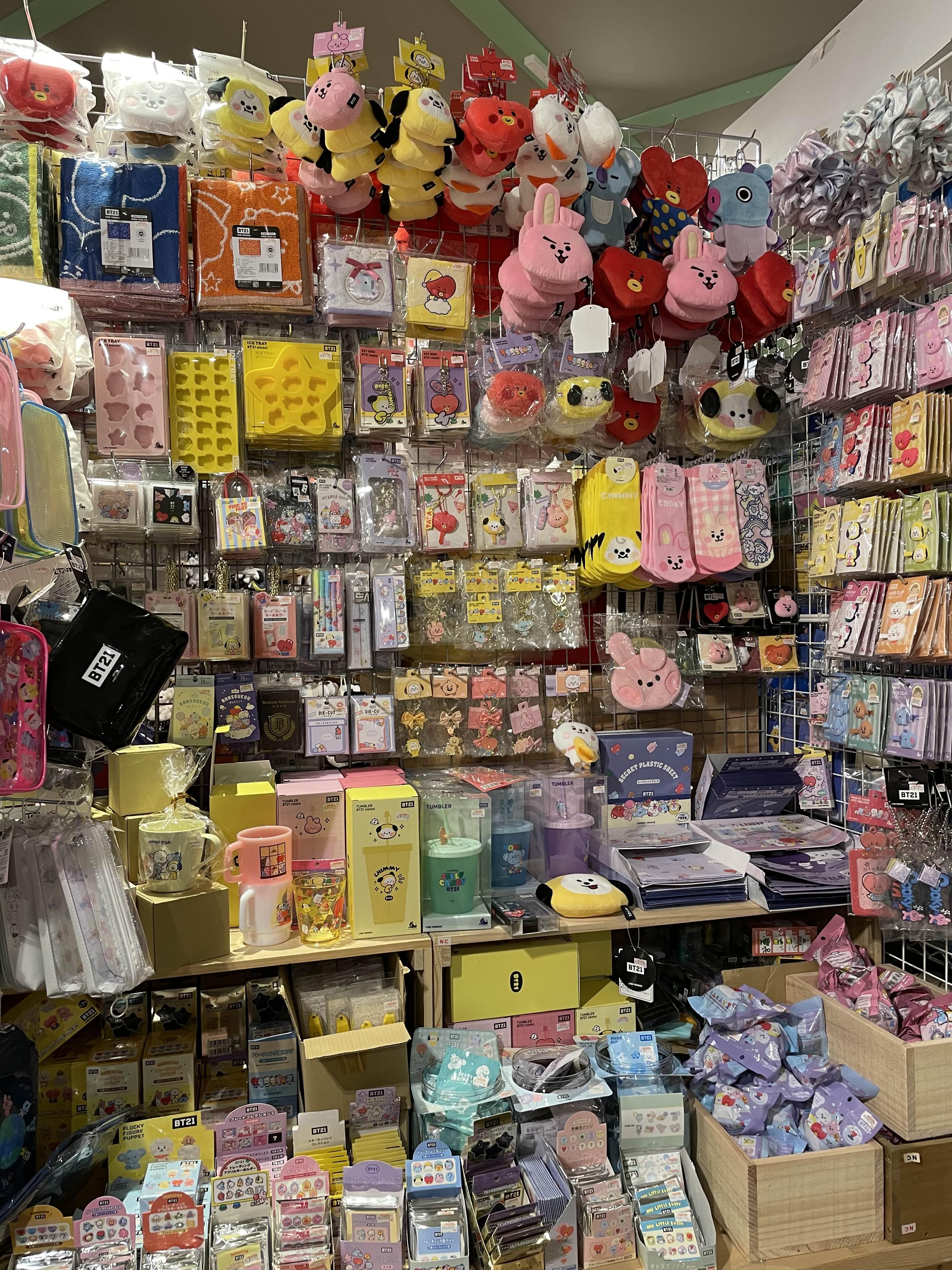 방탄소년단 캐릭터 굿즈들도 팔고 화장품도 좀 팔고 있었다.