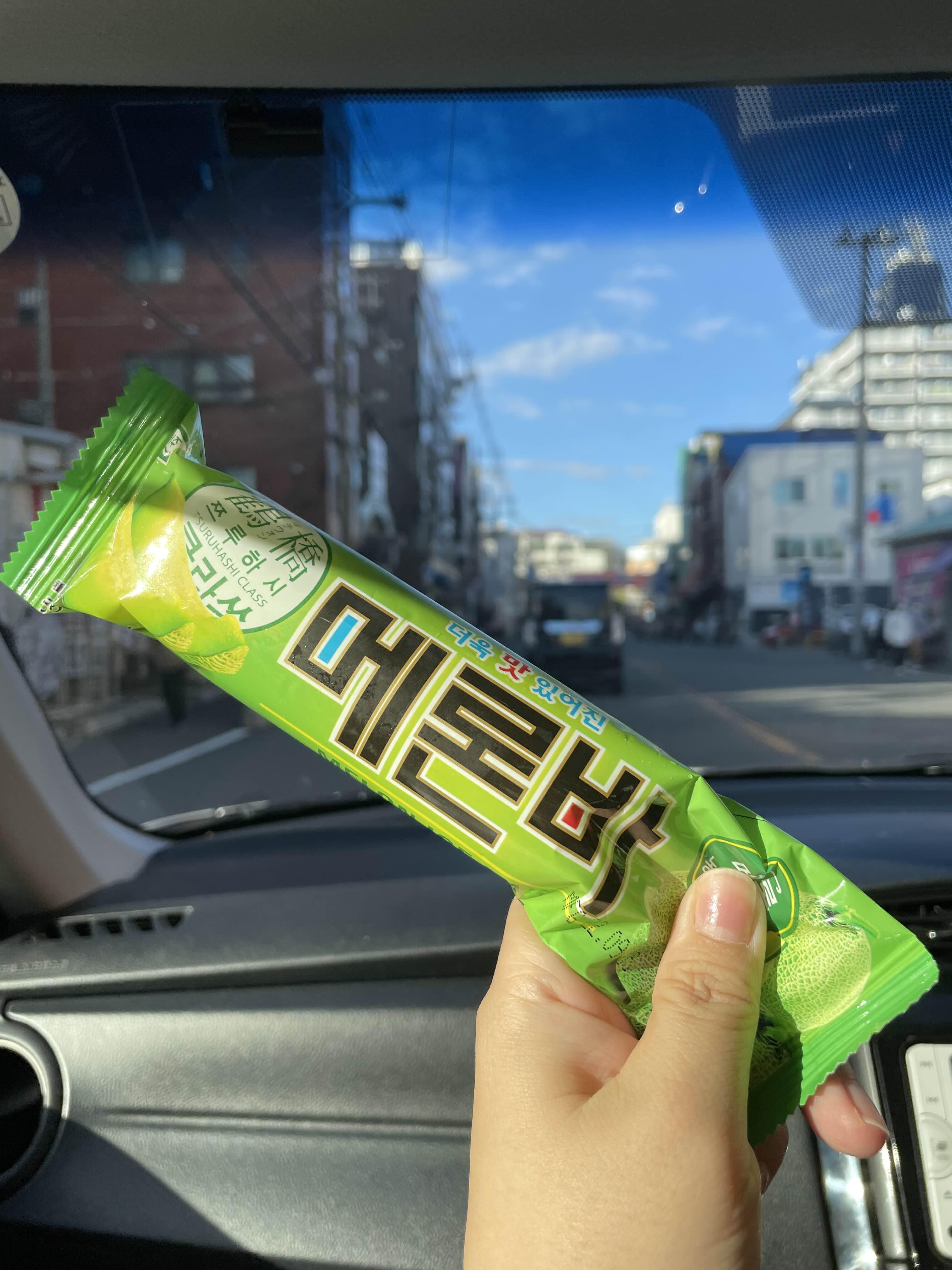 배주스랑 봉봉이랑 사고, 메로나 먹고 싶어서 메로나는 아니지만 메론바 사서 먹었다.