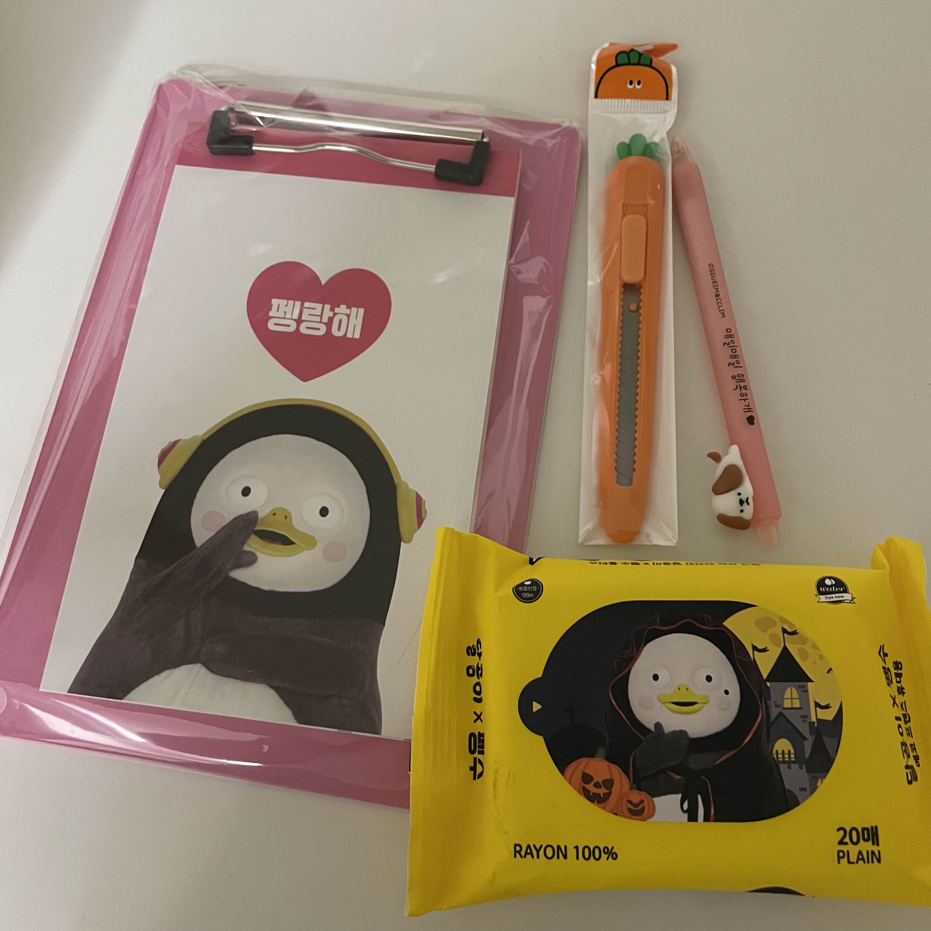 그리고 귀욤뽀짝한 당근 커터칼도 사고 지워지는 볼펜도 샀다.