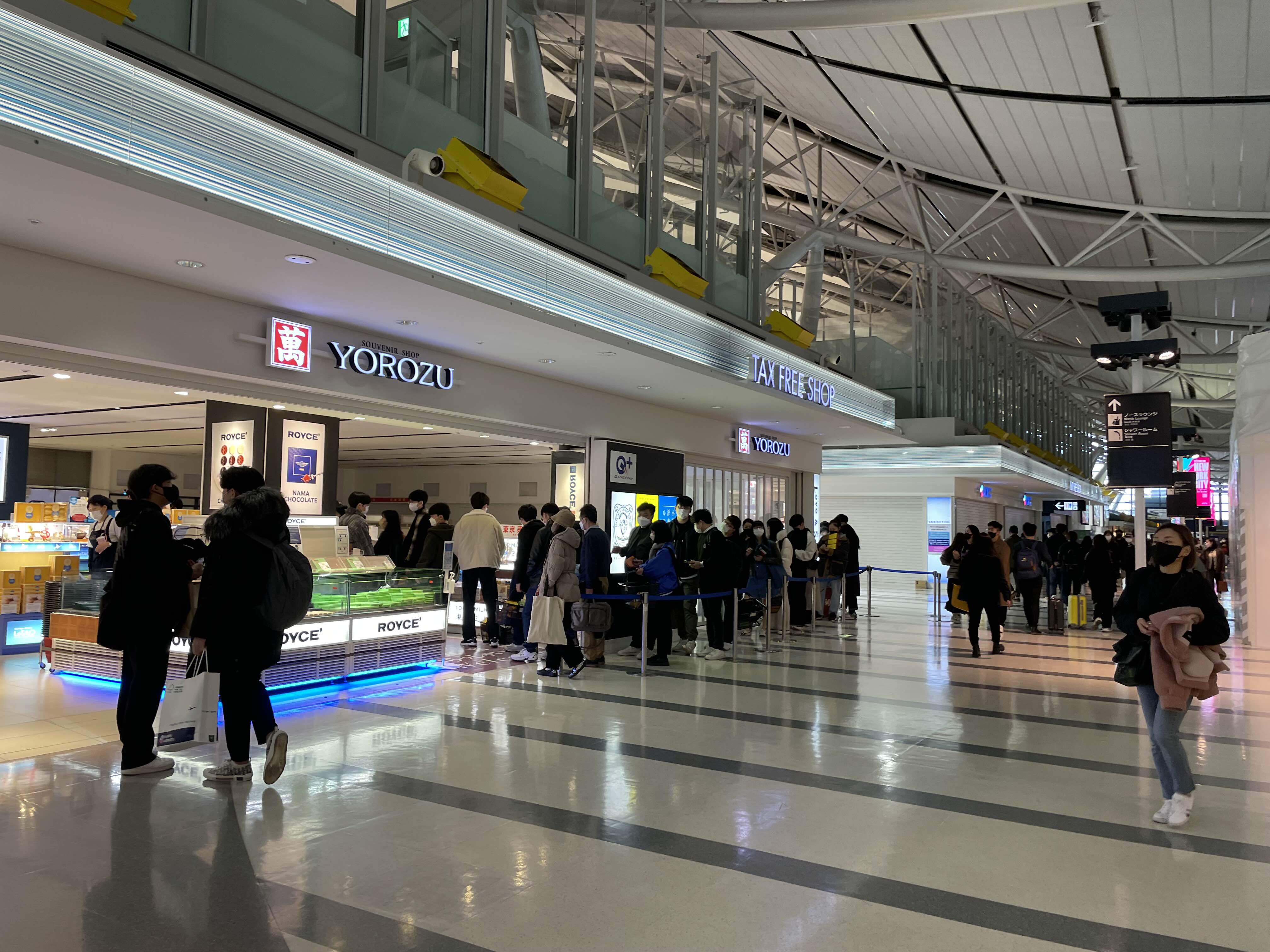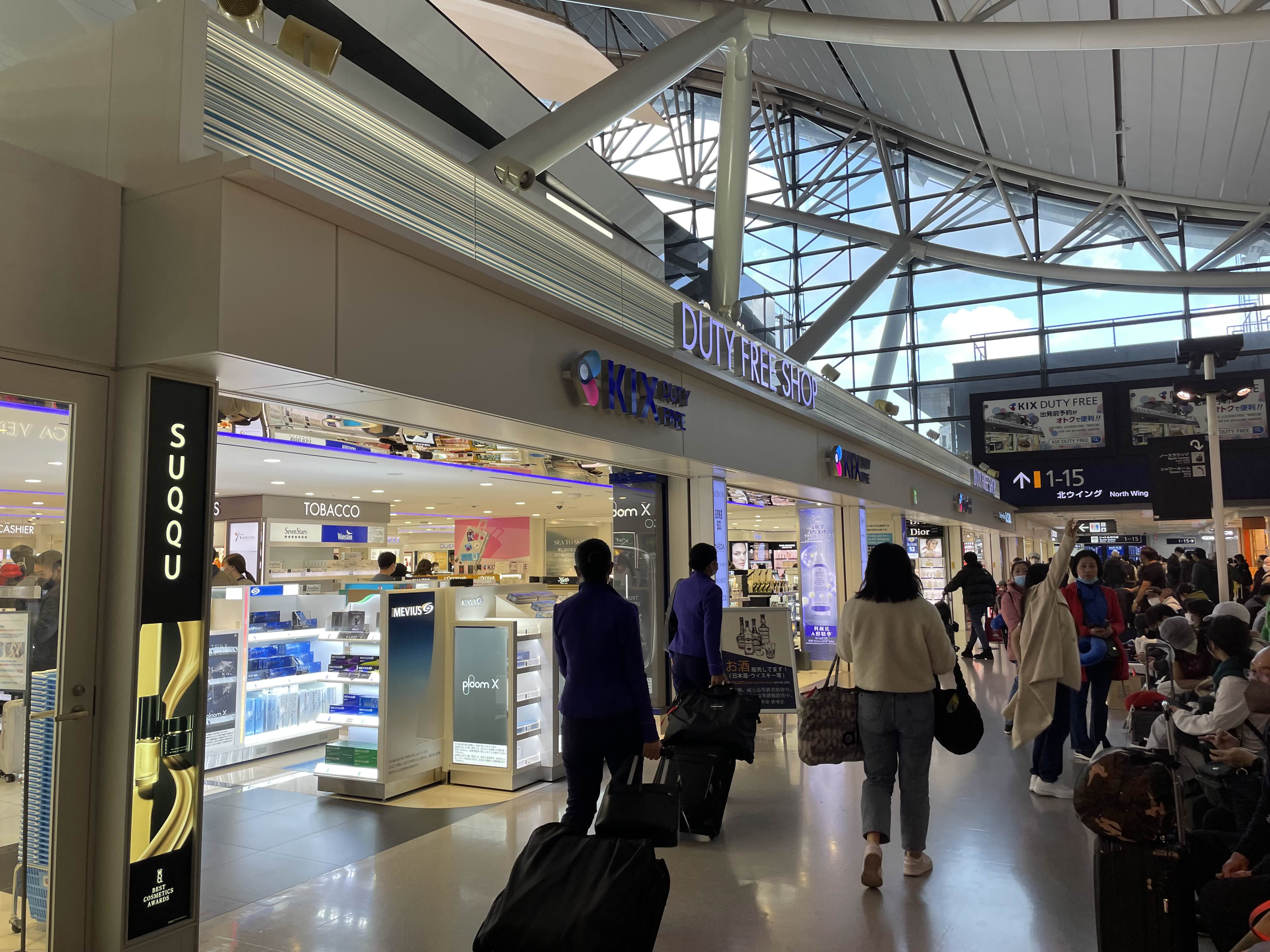 보안검사보다 더 줄이 길었던 간사이공항 선물 판매하는 면세점.