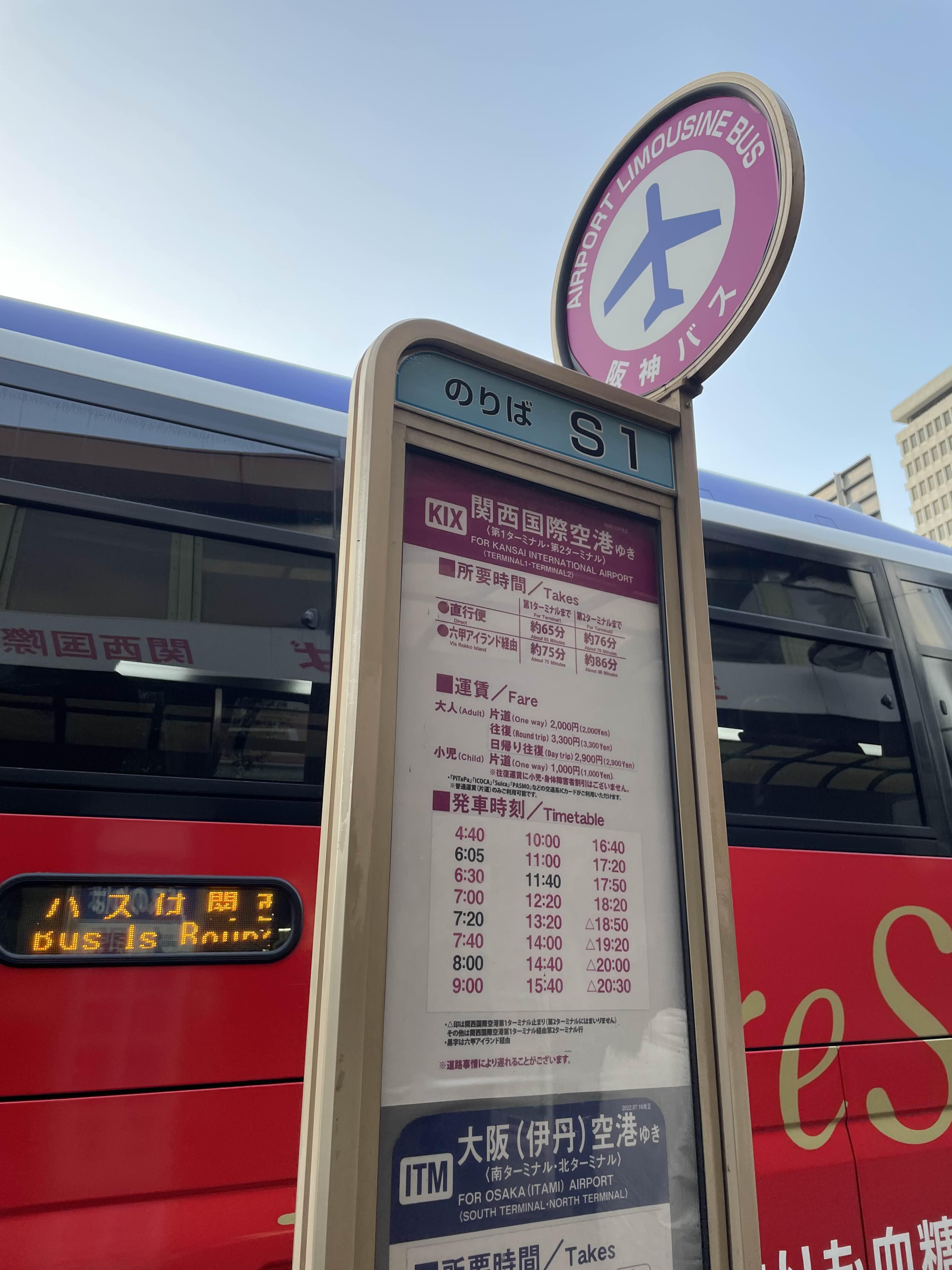 고베에서 간사이공항까지 버스 요금은 편도로 2000엔이고,