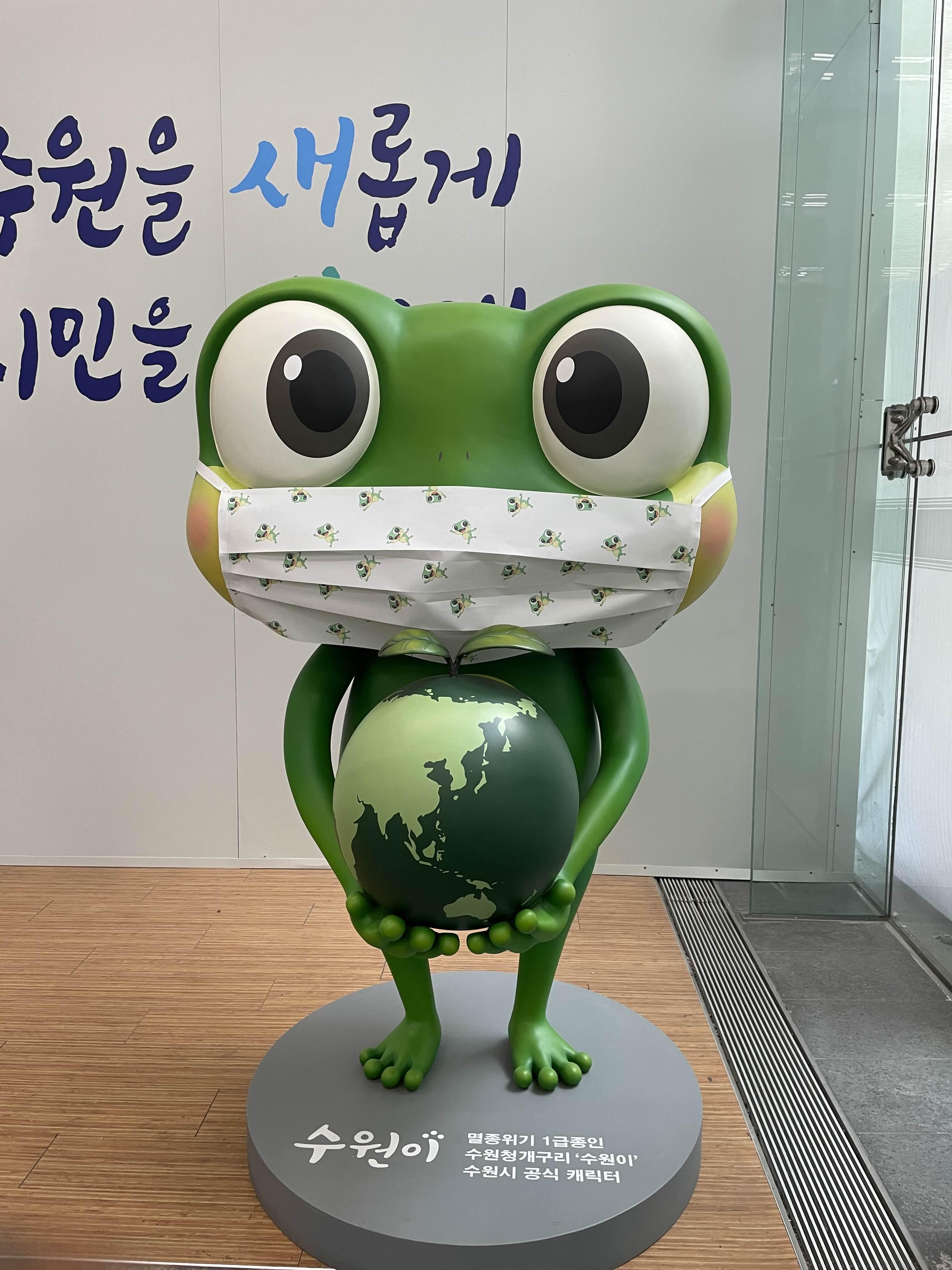 지구본을 들고 서있는 수원이도 만났다. 귀여운 수원이 패턴의 마스크도 착용하고 있었다.
