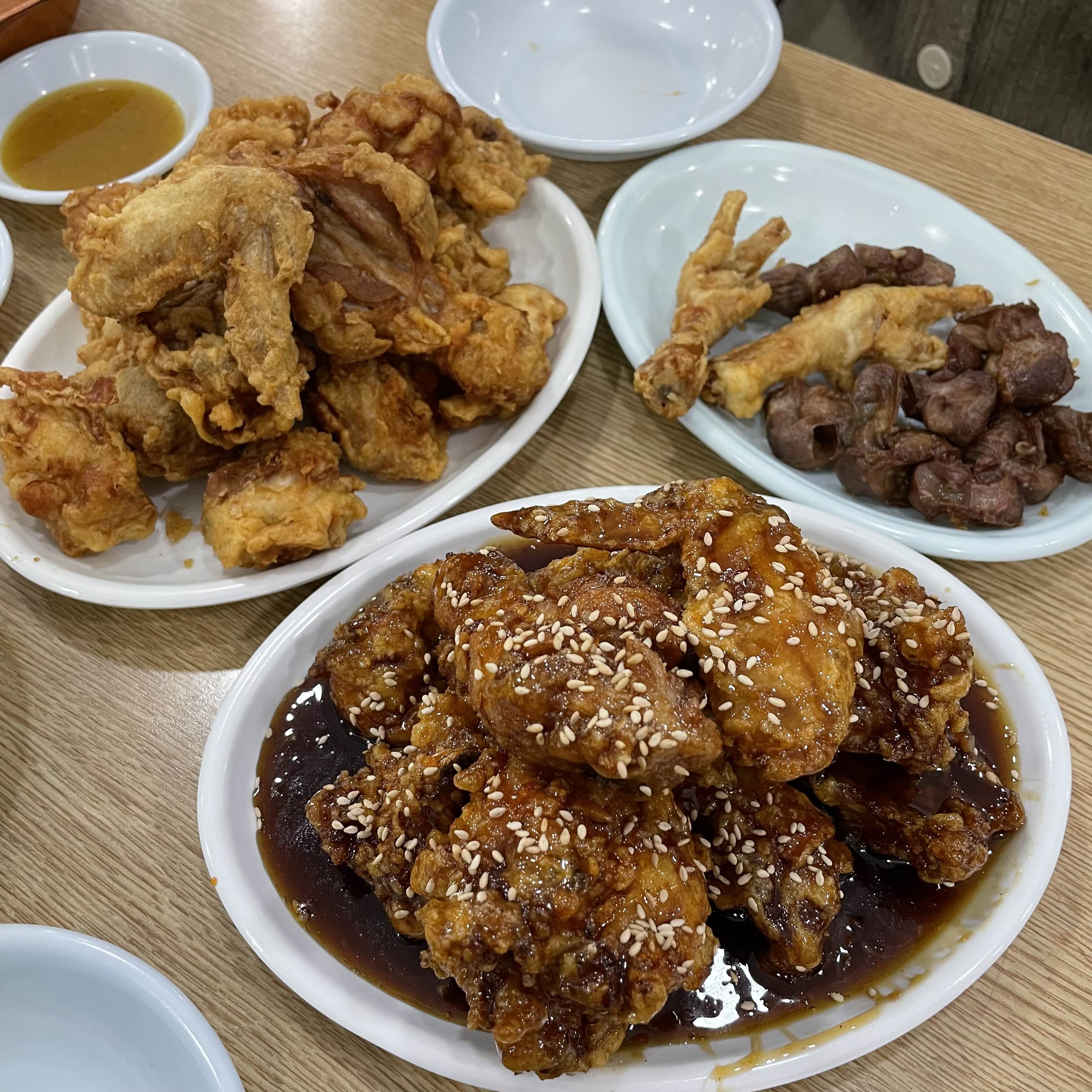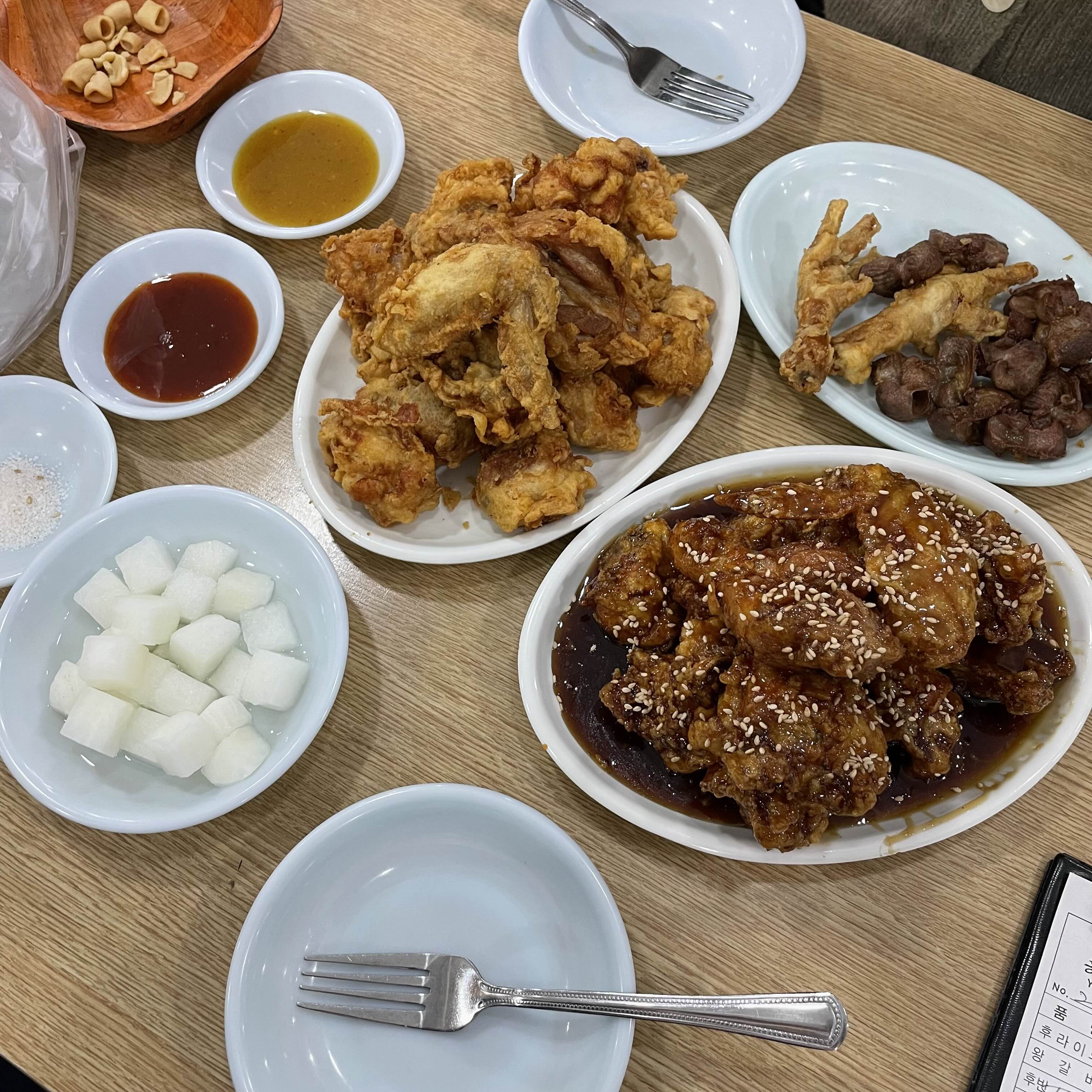 수원에서는 통닭을 시키면 저렇게 닭똥집이랑 닭발 튀김을 서비스로 주는 게 특징이다.