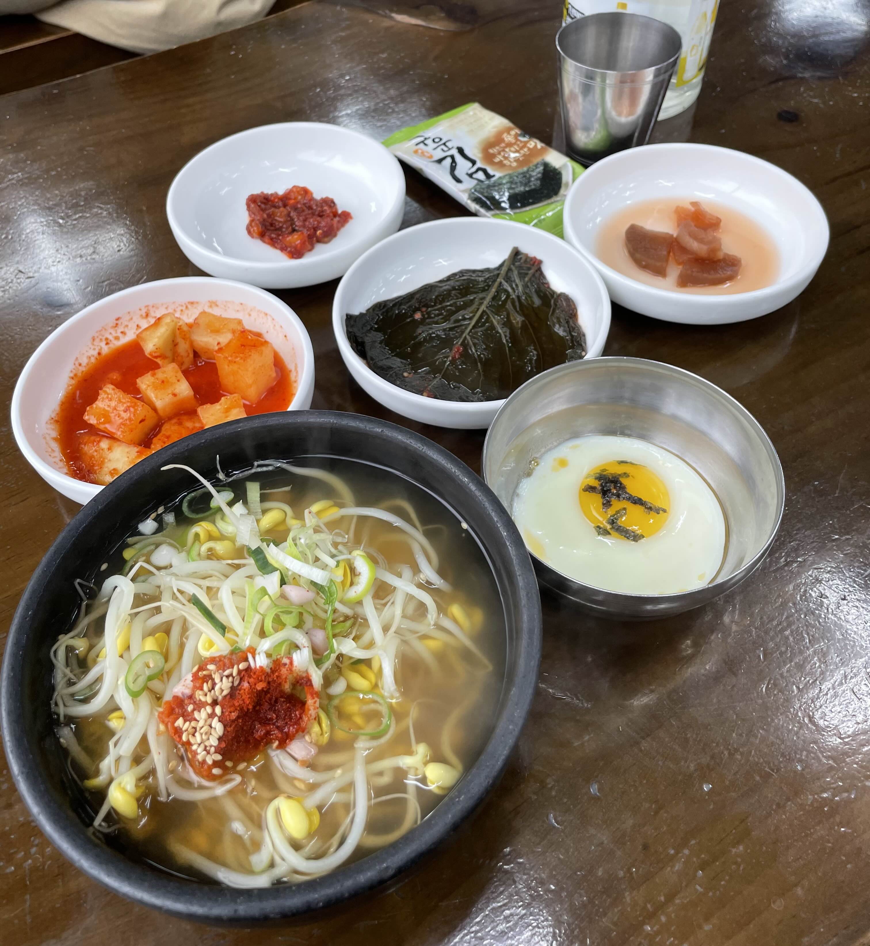 그리고 나서 시원한 콩나물 국밥이랑 밑반찬을 같이 야무지게 먹어주면 된다.