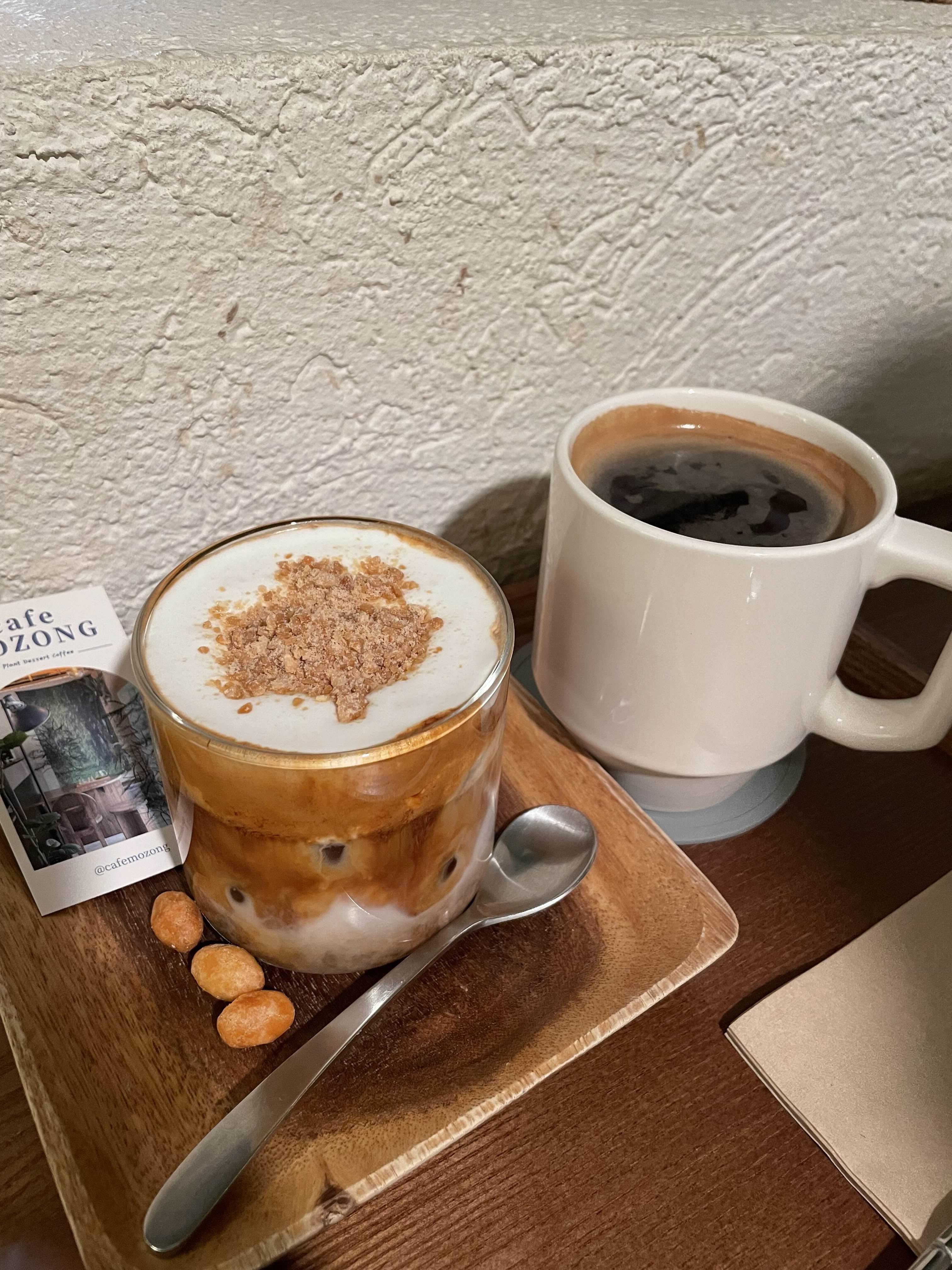 시그니처 메뉴인 땅콩 라떼랑 따뜻한 커피도 마시고