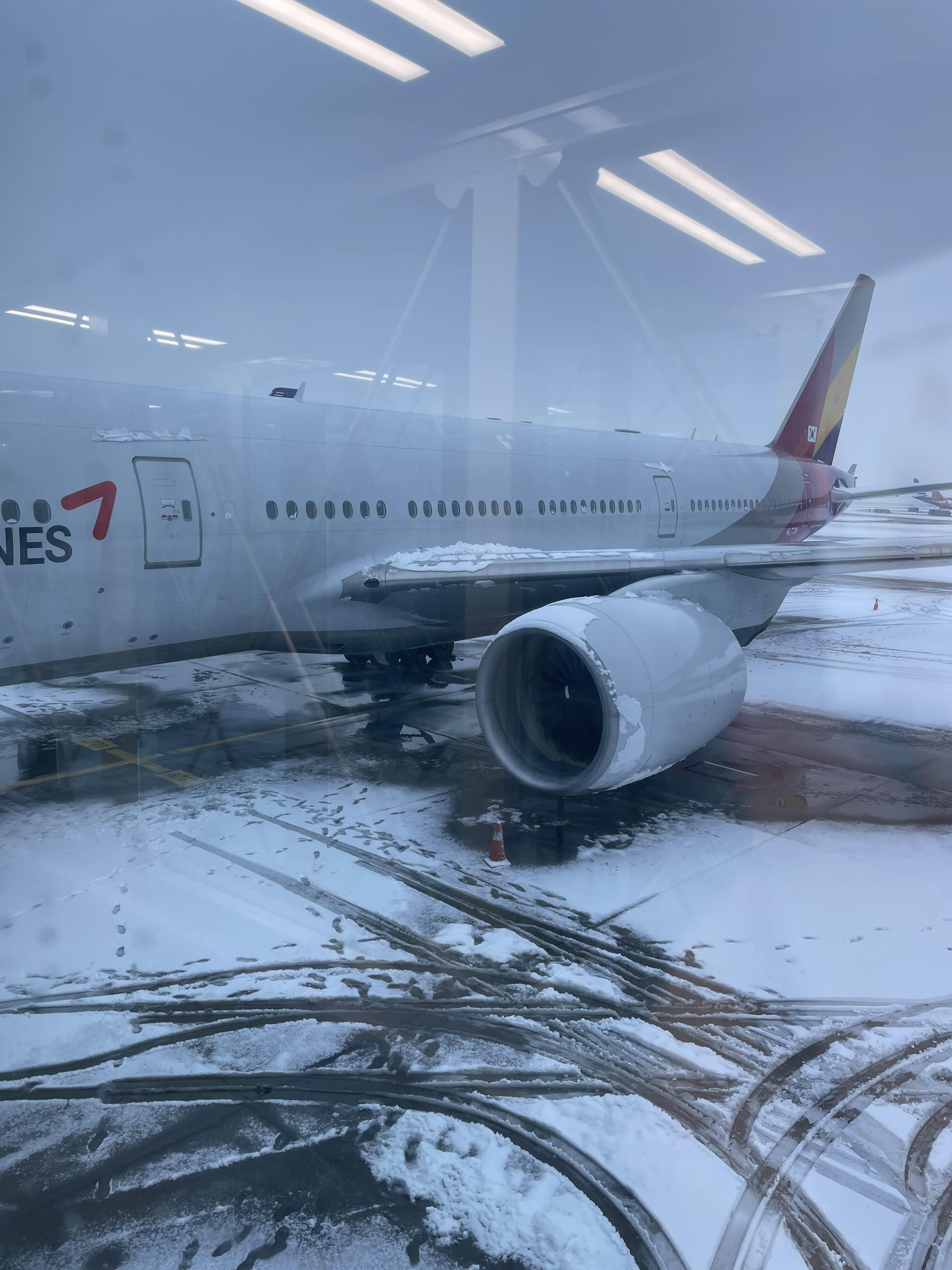 서둘러서 탑승구에 갔는데 눈이 많이 내려서 살짝 탑승 시간이 늦어져있었다.