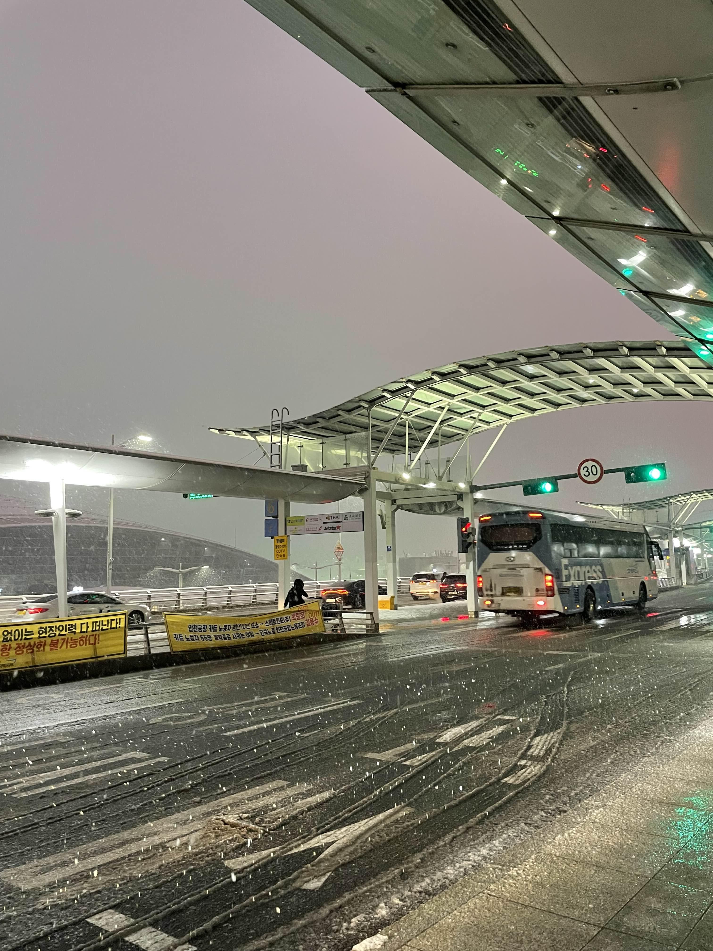 공항버스 타고 공항 가는 길도 험난해서 새벽에 일어나서 버스 잡고 터미널까지 휘날리는 눈발 속에서 어렵게 발걸음을 옮겼다.