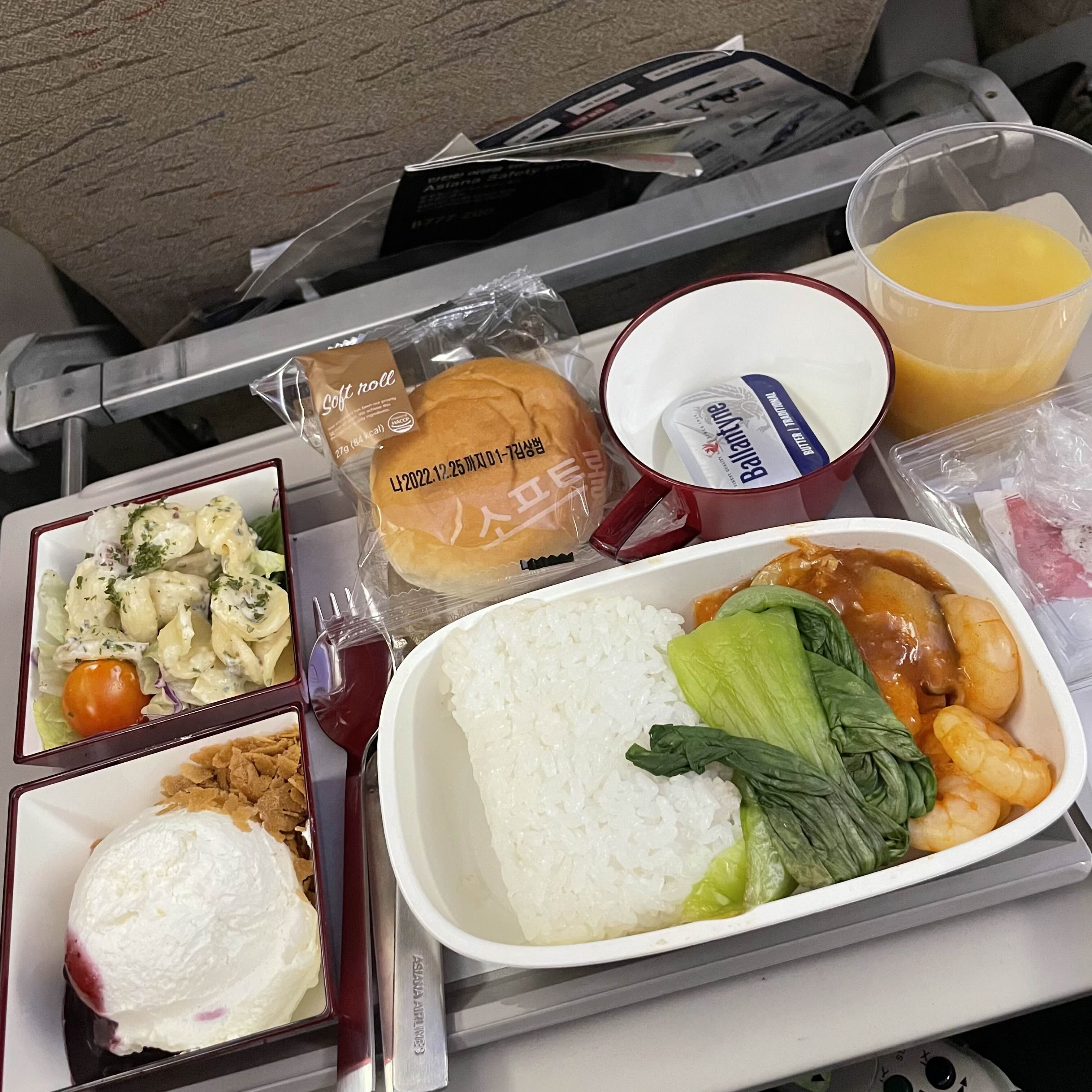 마지막 기내식으로는 매콤한 해산물 덮밥을 먹었는데 맛있었다.