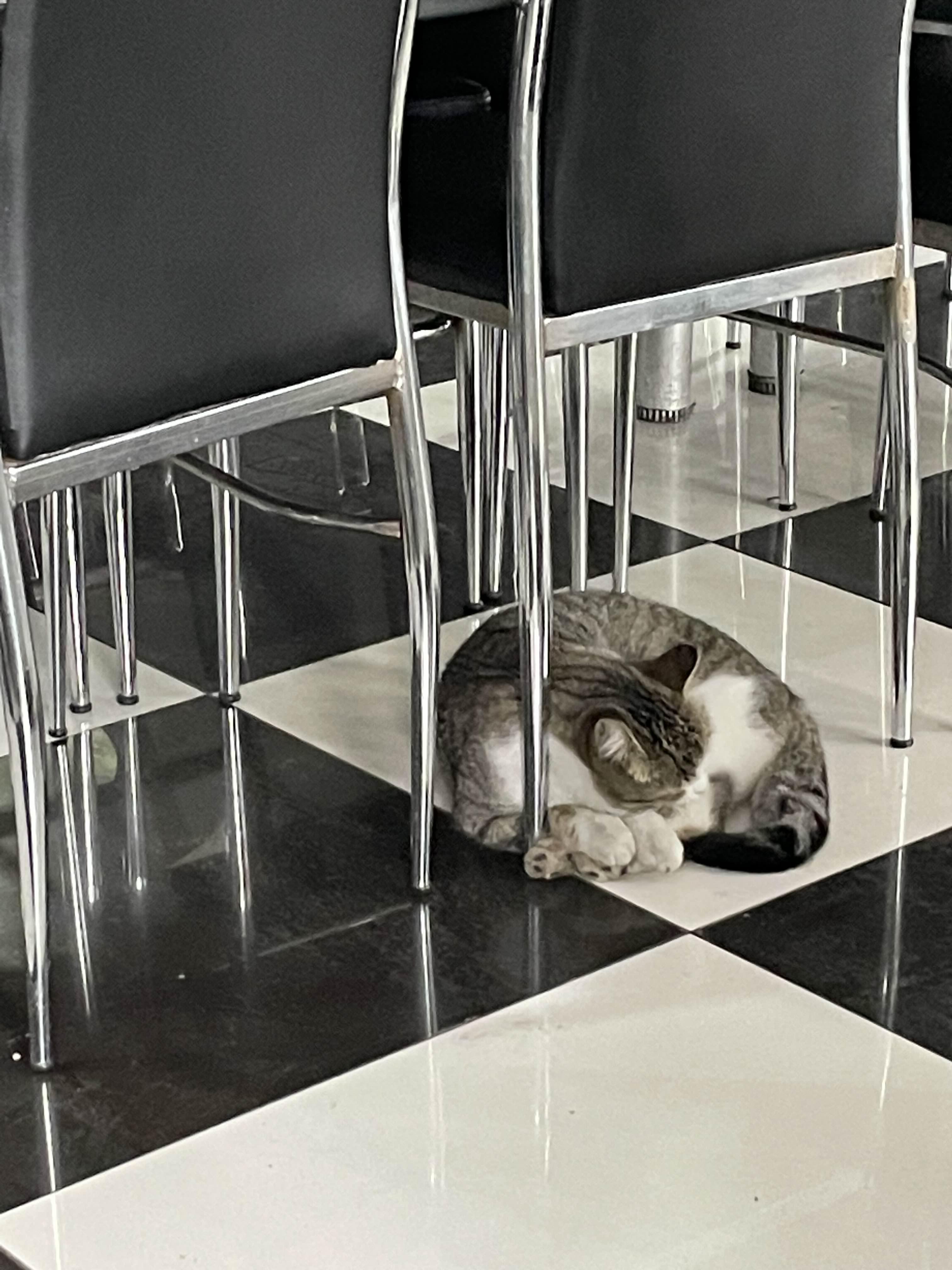 식당에 있는 고양이나 강아지는 통통하다.