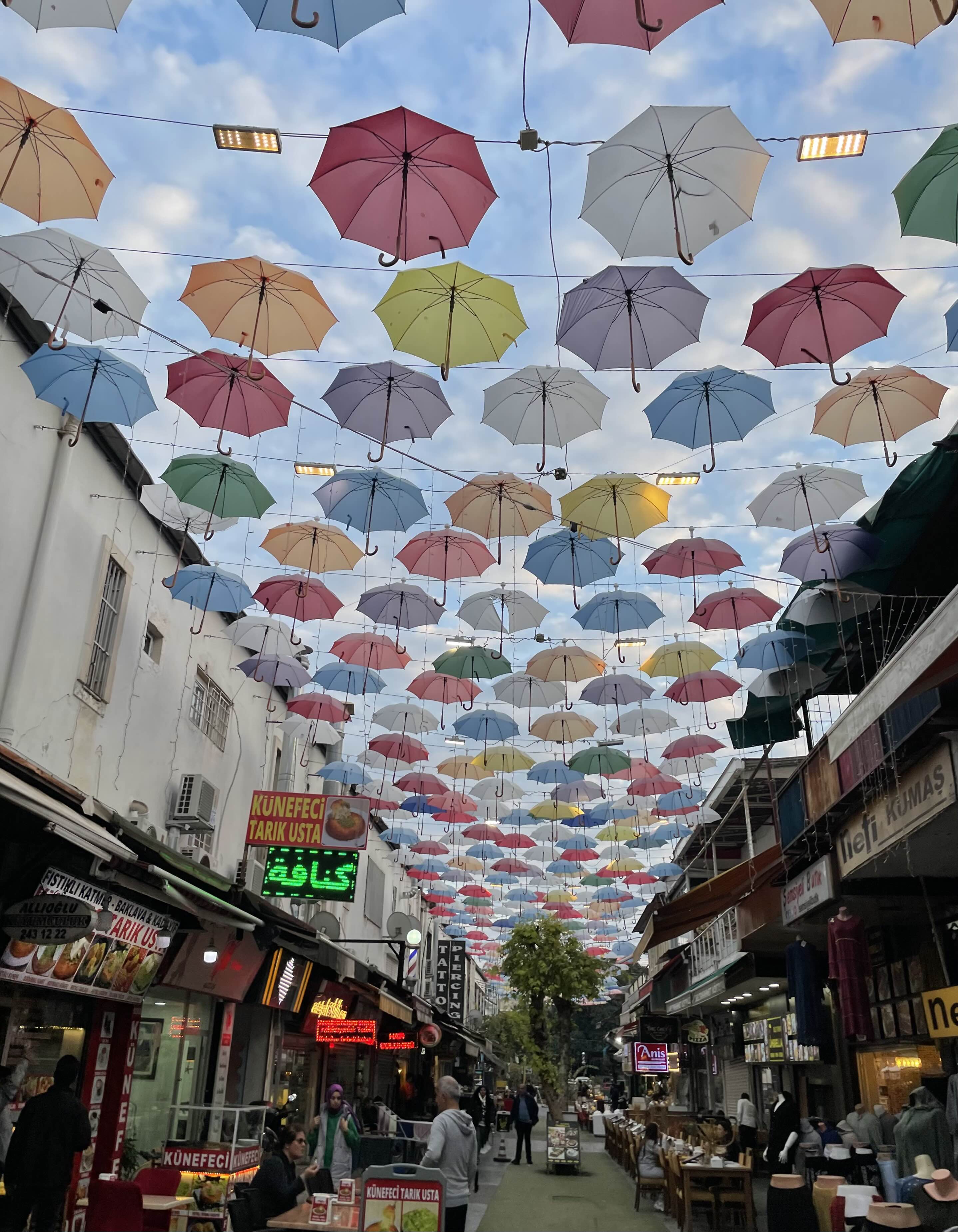 우산이 하늘 위에 쫙 펼쳐진 거리도 걸어보고,