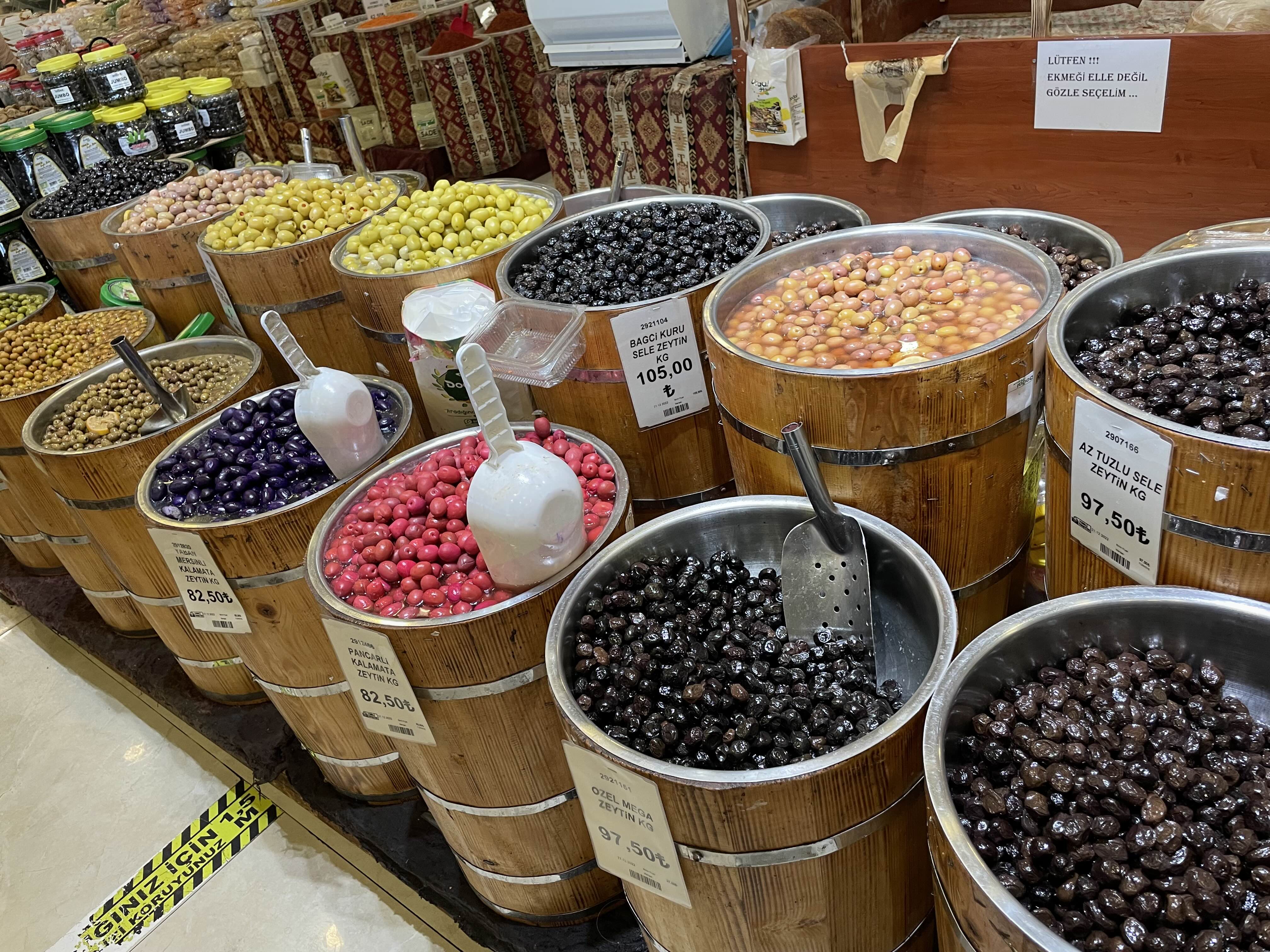 올리브 절임이 다양한 종류 구비되어 있었다.