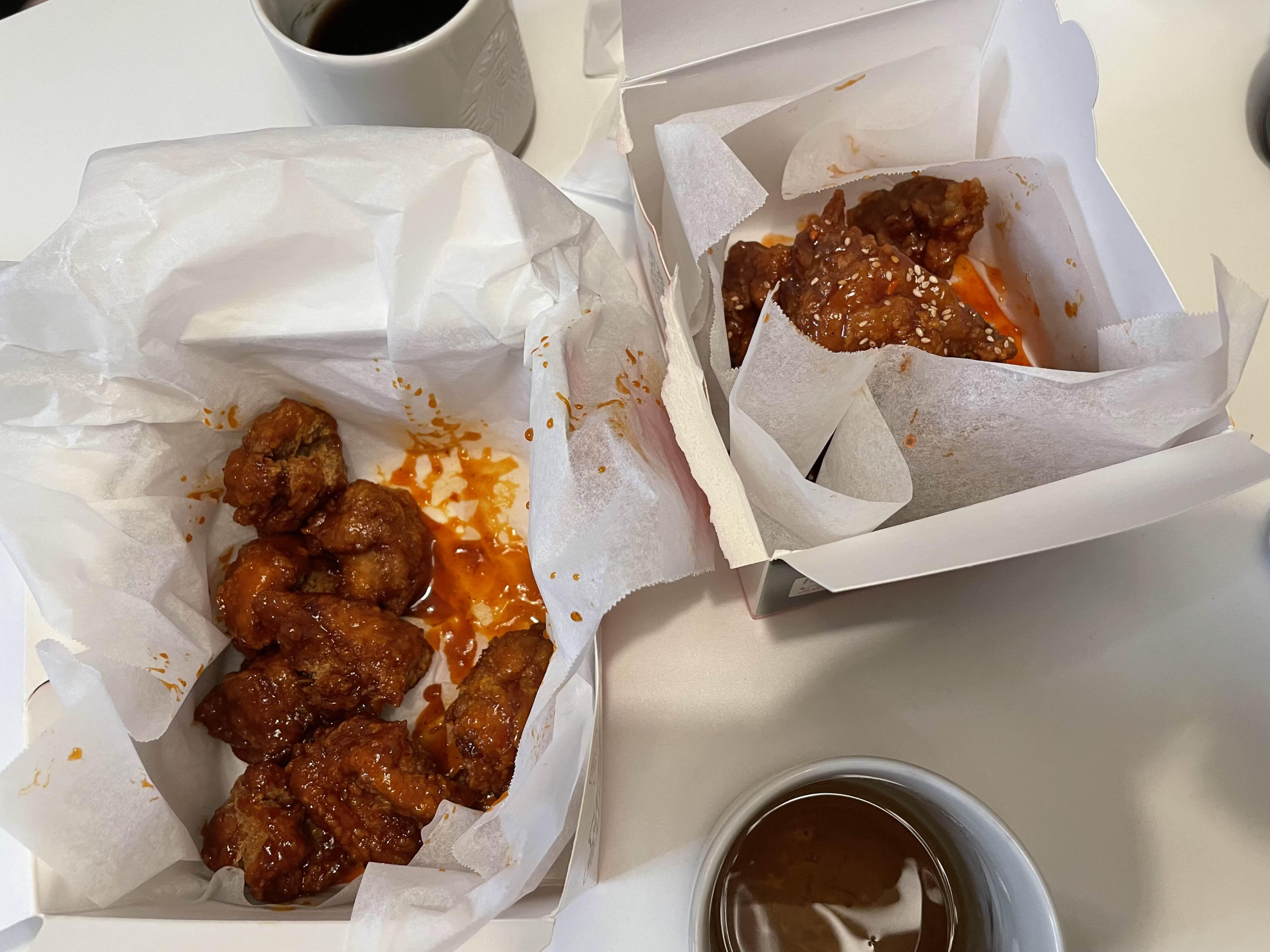 후라이드반 매운양념반 해서 반반치킨을 주문했는데 집에 와서 보니 양념반 매운양념반이었다 !!!