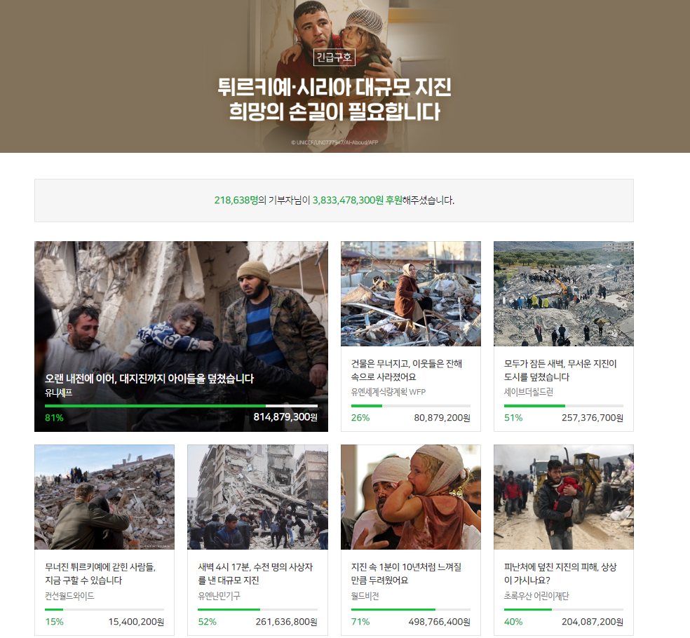 많은 후원 단체들이 튀르키예를 위해 후원금을 모으기 시작한 것을 확인할 수 있다.