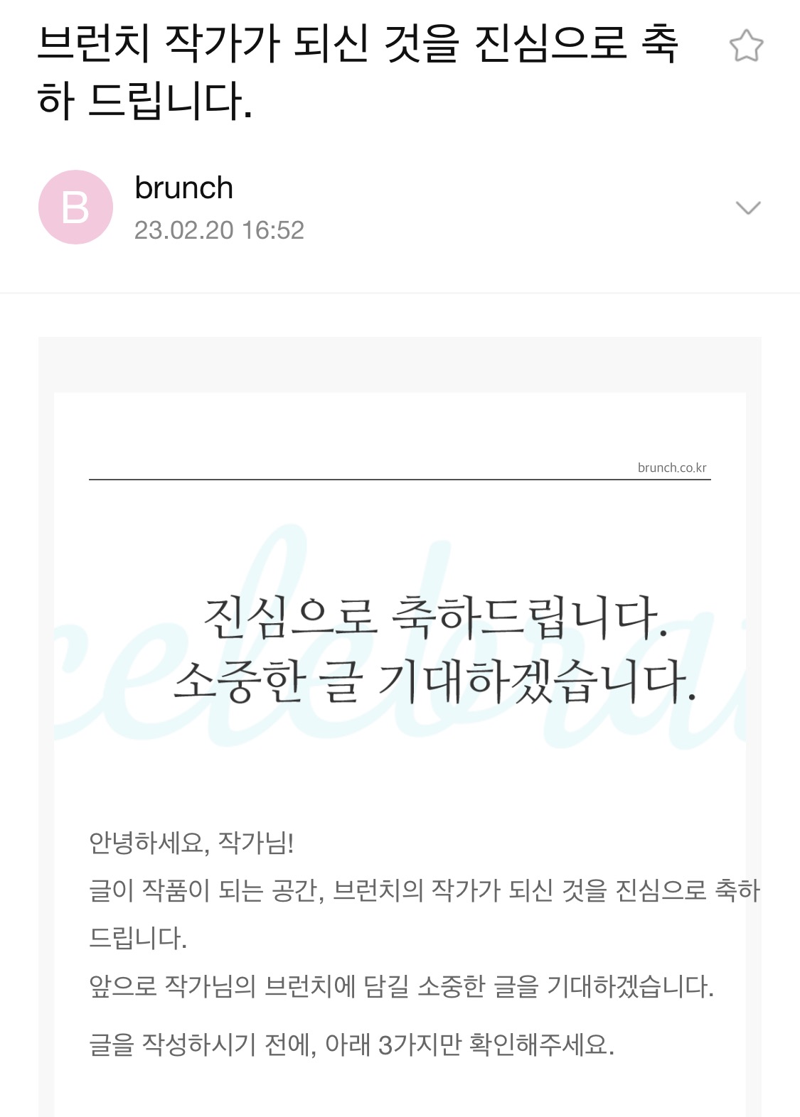 브런치 작가에 선정됐다는 연락을 받고 뛸듯이 기뻤다.
