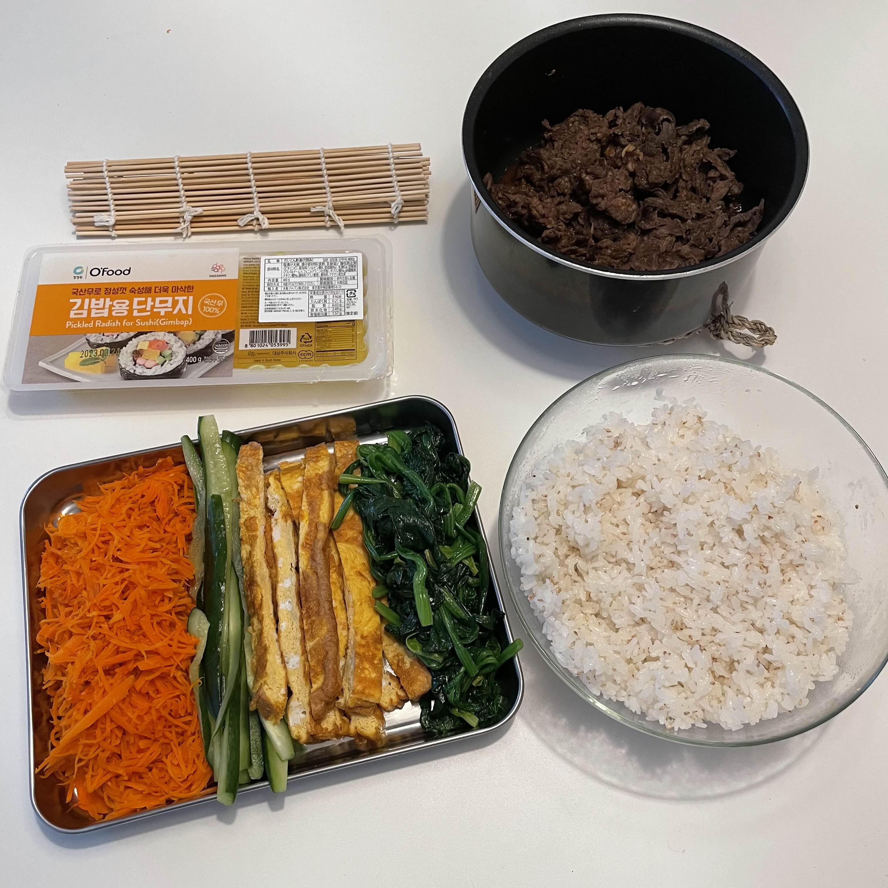 별 거 아닌 거 같은데 김밥 싸는데 두시간이나 소요됐다. 효효