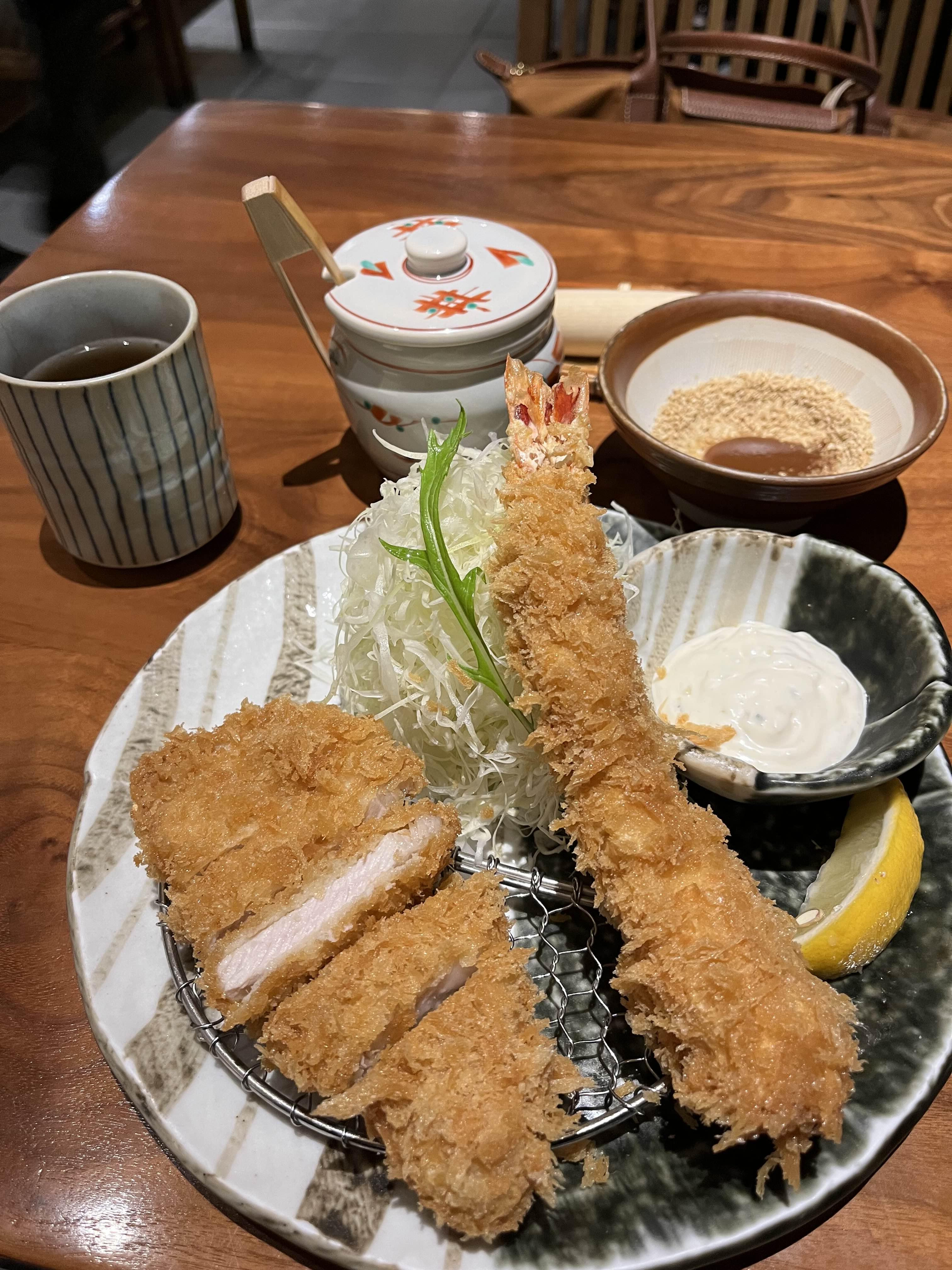 로스카츠는 담백하고 맛있었고 왕새우카츠도 살이 두툼한 게 정말 맛있었다.