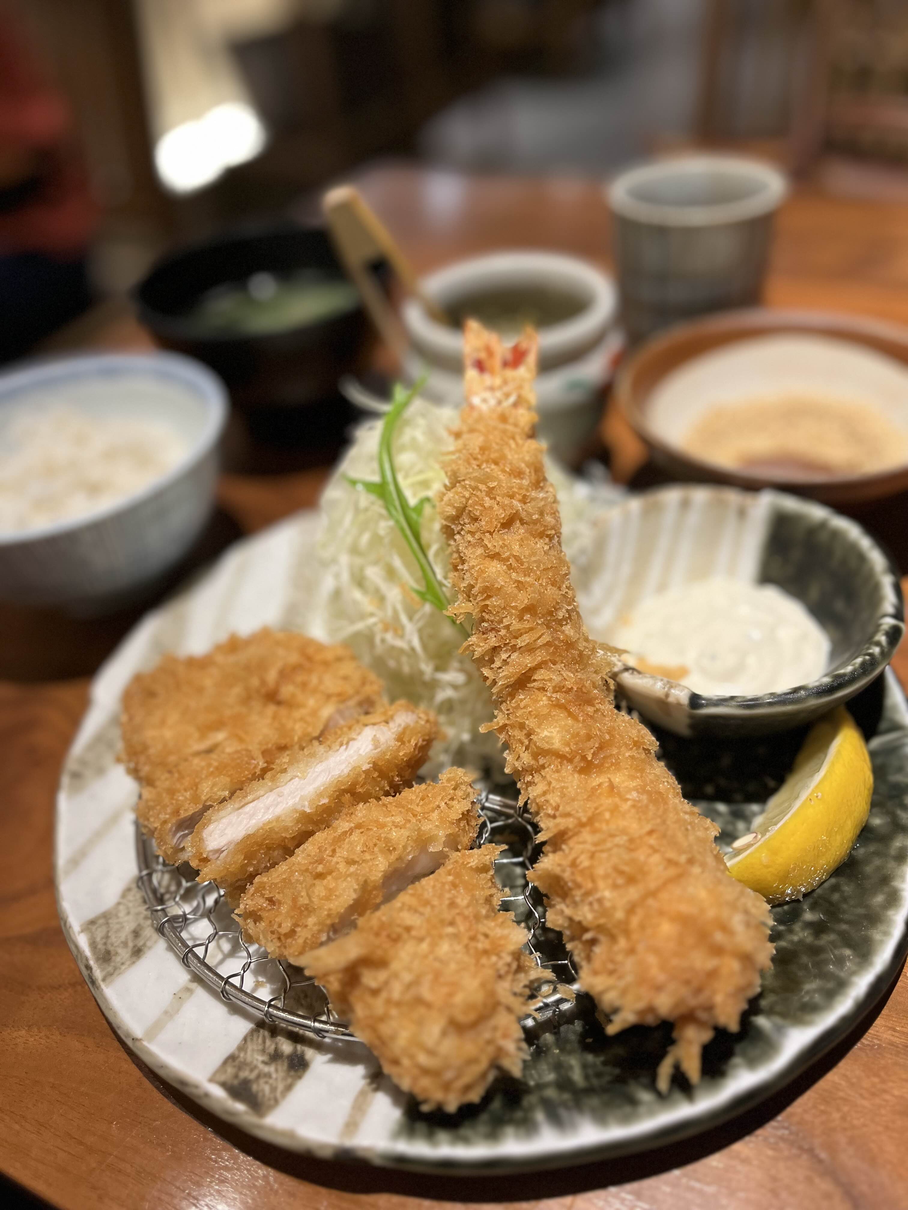 그래도 새우 튀김 먹고 싶은 생각에 새우튀김과 로스카츠를 주문했다.