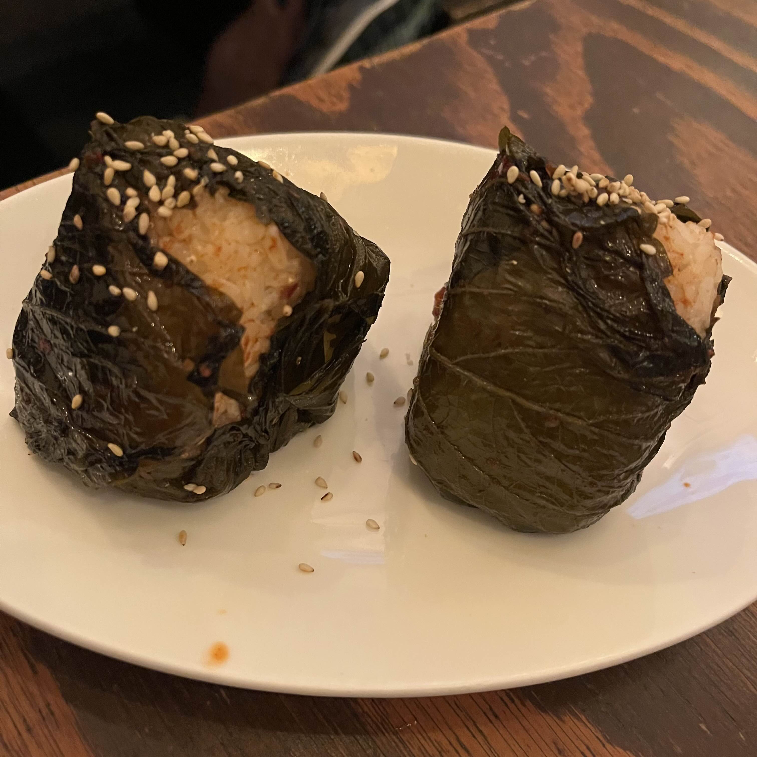 깻잎 장아찌로 감싼 주먹밥이었는데 맛있었다.