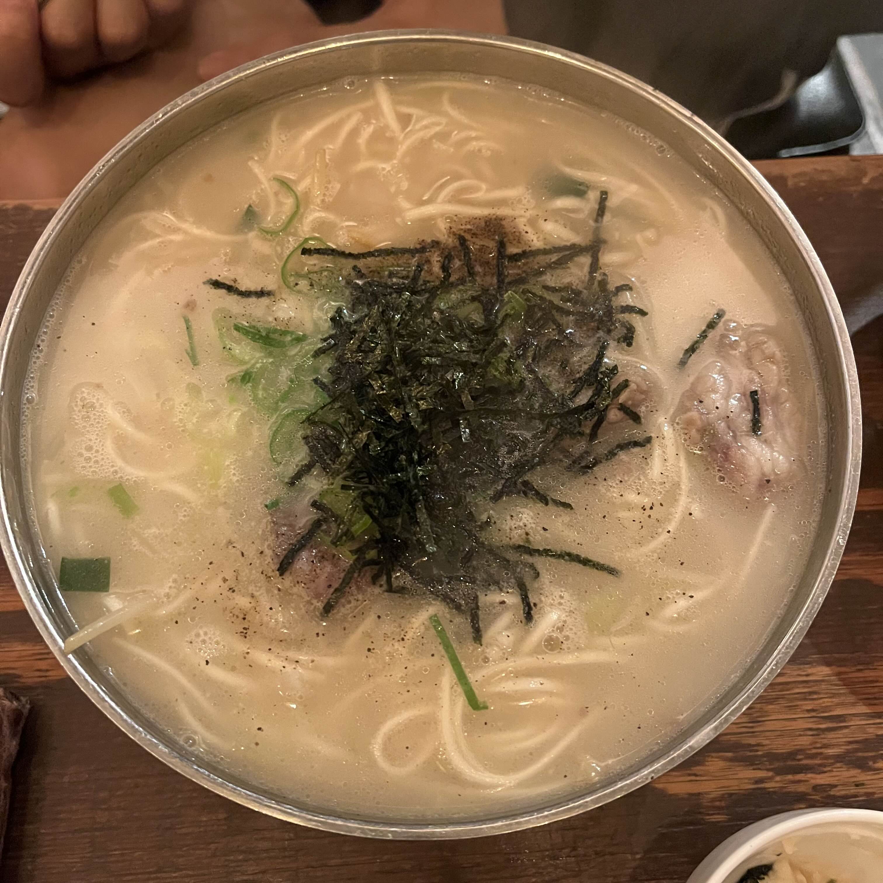 국물맛은 사골 국물 맛이라 괜찮았는데 면이 라멘 면이라 아쉬웠다.