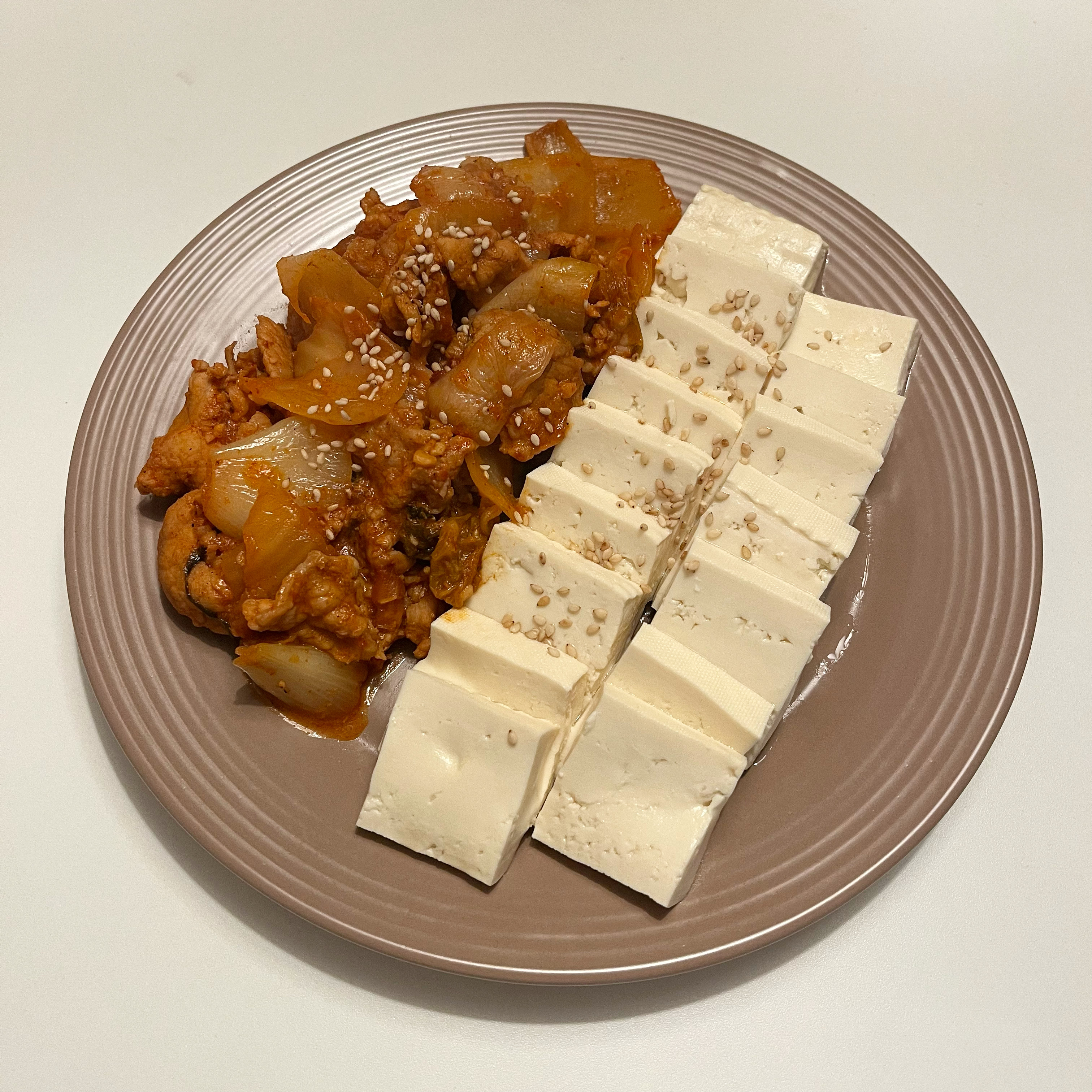 오랜만에 두부조림도 만들고 돼지고기 간장 볶음, 도토리묵밥, 계란말이해서 맛있게 먹었다.