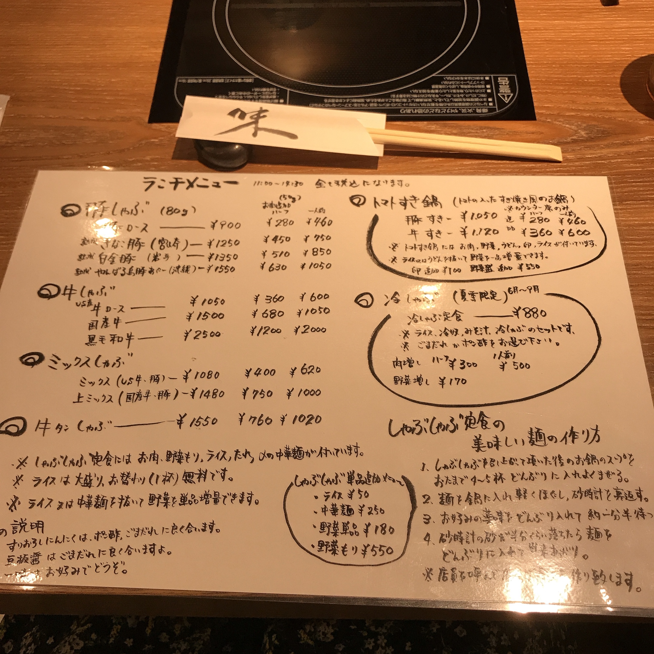 가게는 일인용 나베에 샤부샤부를 즐길 수 있도록 되어 있는데, 날이 너무 더워서 냉 샤부샤부 冷しゃぶ를 메뉴판에서 보자마자 오 이거 먹어야겠다! 싶었다.