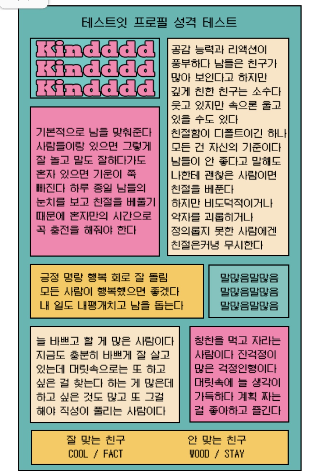 100번 다 INFJ가 나오는 내가 테스트잇 성격 테스트를 했는데 ENFJ가 나왔다. 띠용