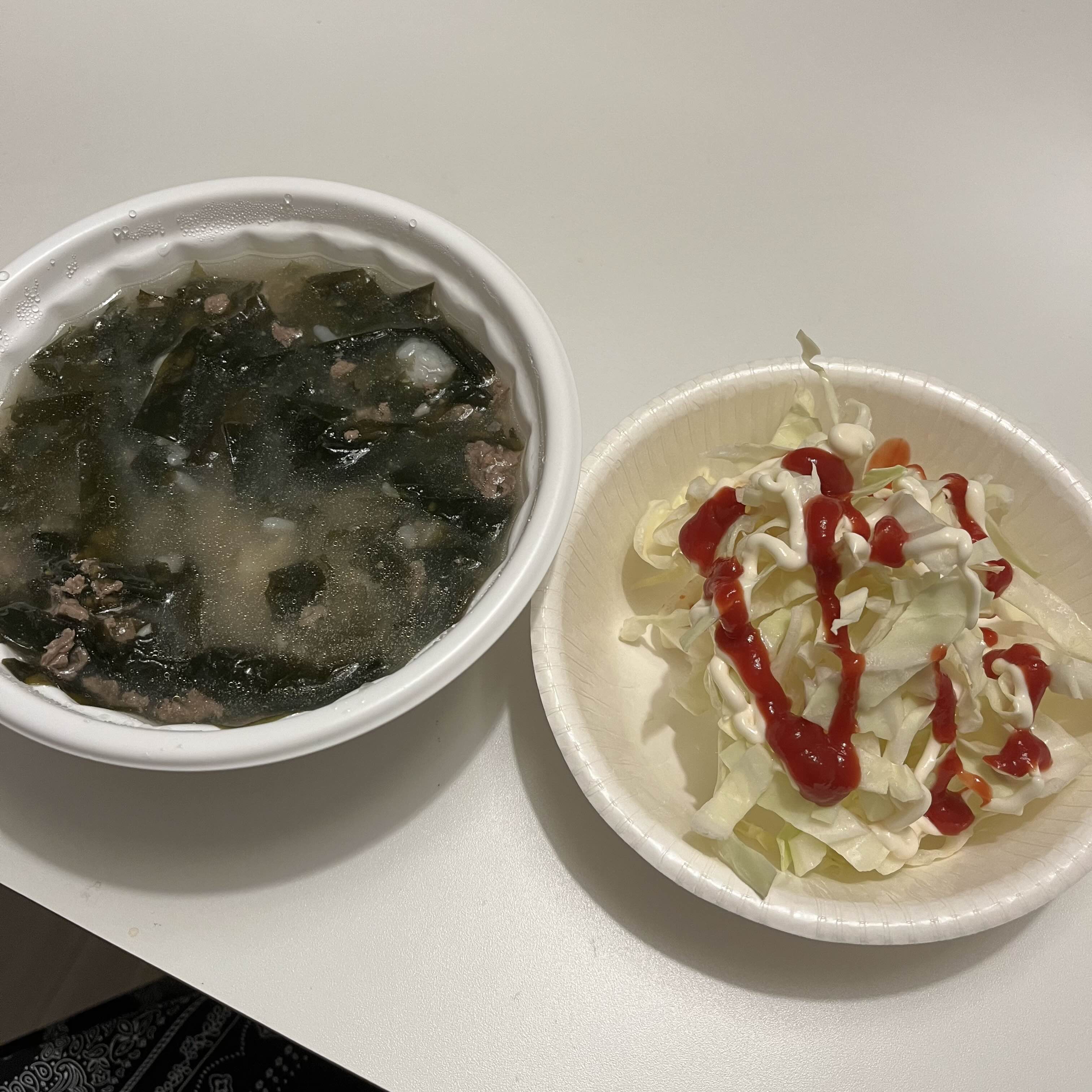 미역국에 밥 말아서 양배추 케요네즈 소스 버무린 샐러드랑 먹으면 꿀맛이당