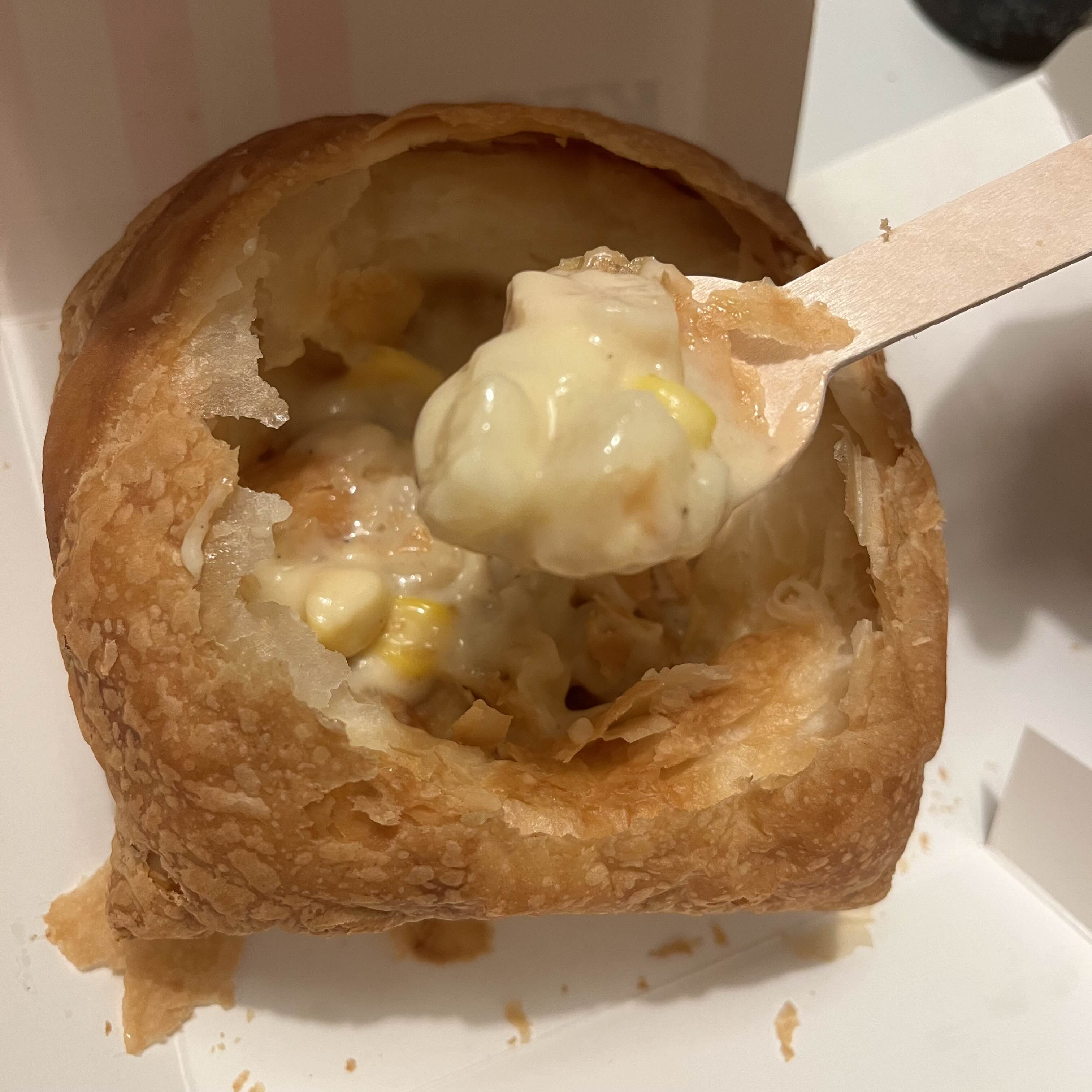 따뜻한 크림 스튜가 파이 안에 들어가 있는데 감칠맛이 많이 나고 맛있다.