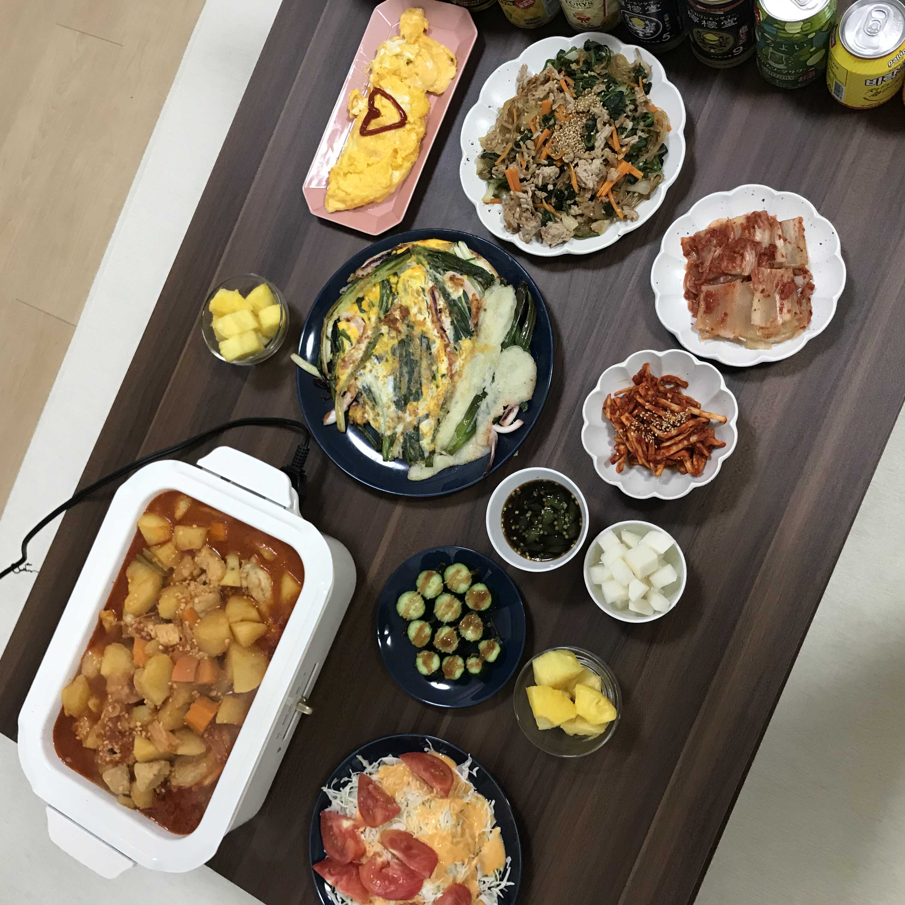 파전이랑 잡채는 열심히는 만들었는데 시간이 지나서 맛있는 상태에서는 못 먹은 것 같아서 아쉬웠다.