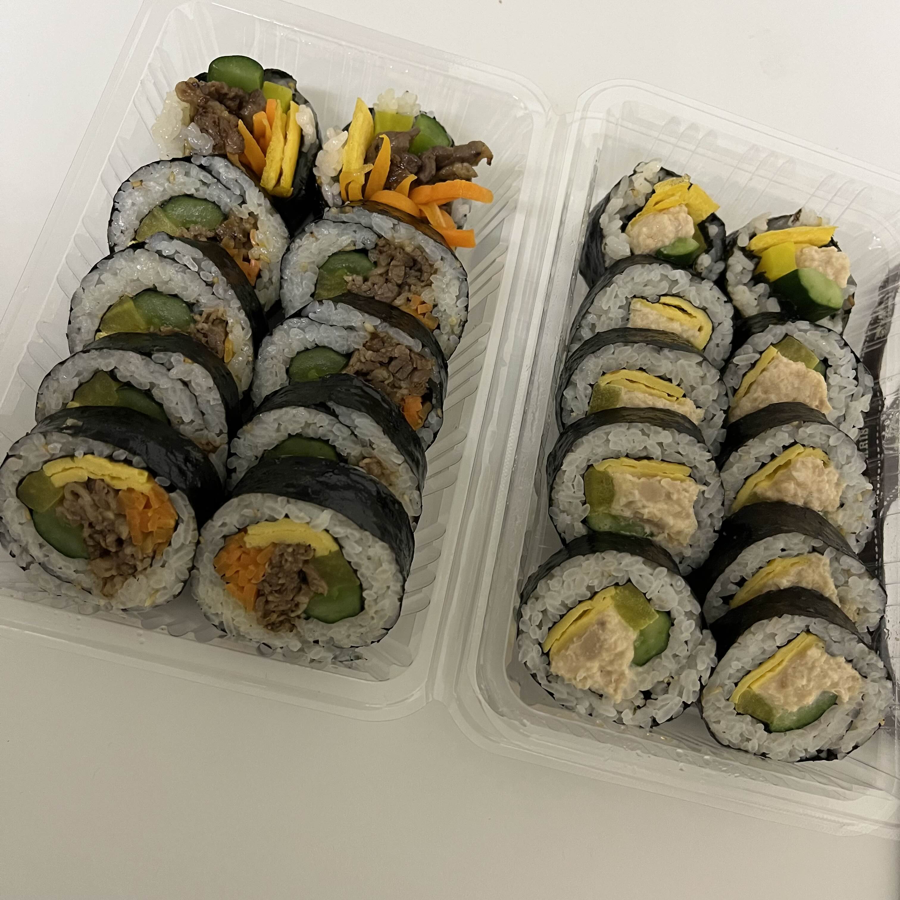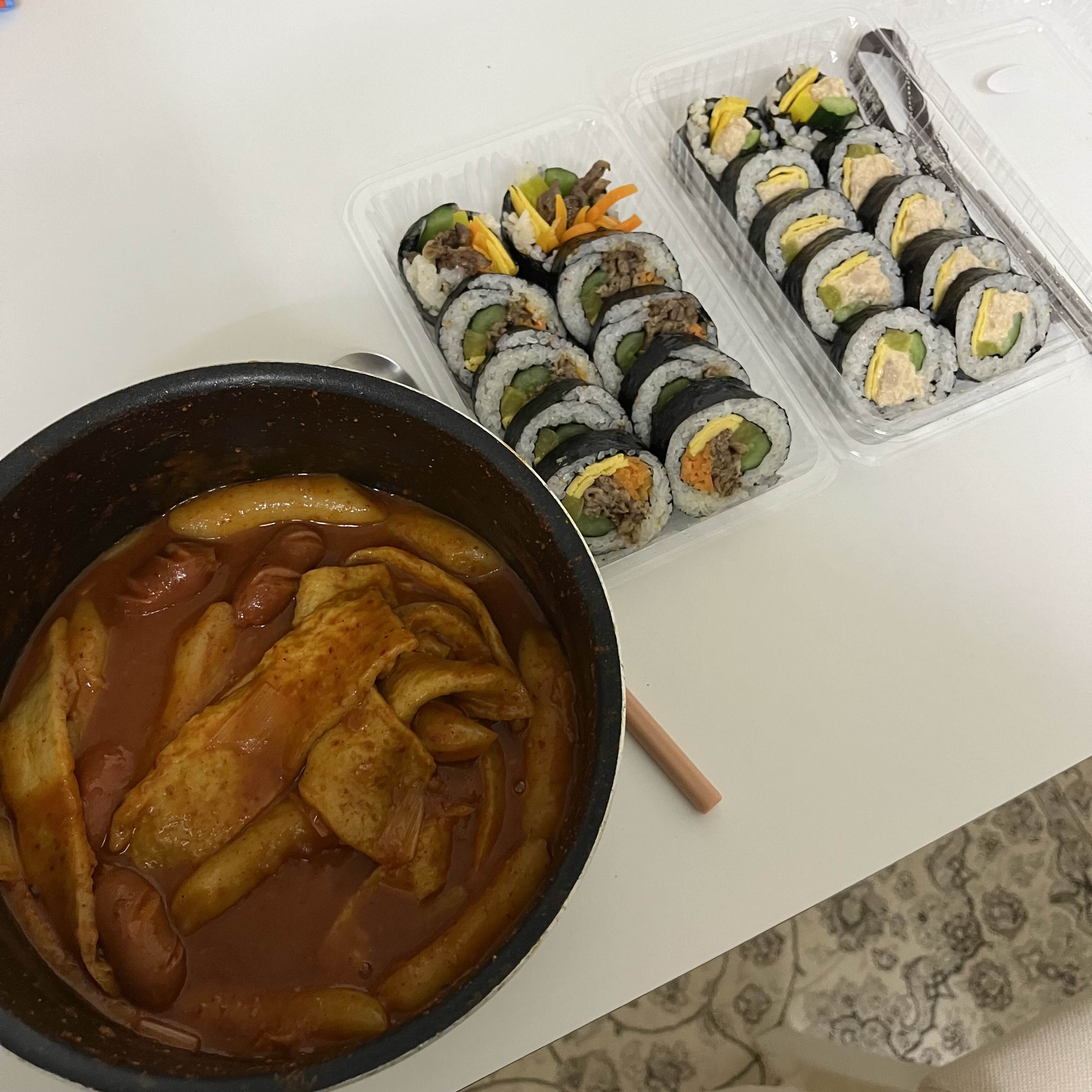 불고기 김밥, 참치 김밥을 사와서 엽떡이랑 같이 먹었다.