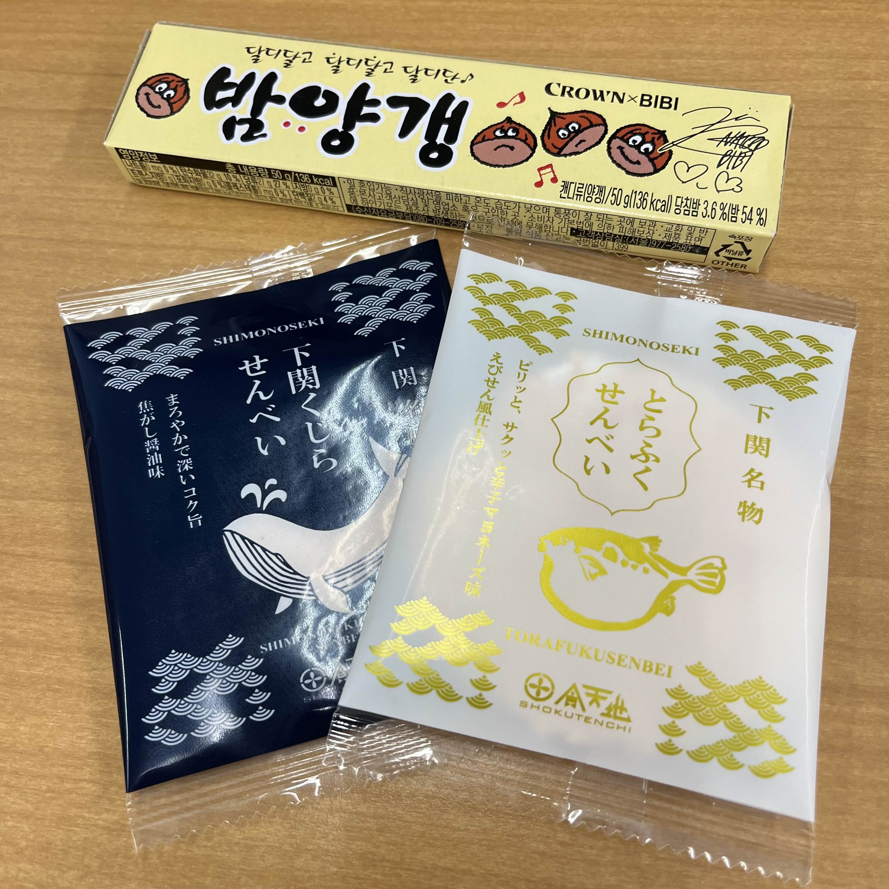 출장 갔다가 시모노세키의 명물 복어가 들어간 센베이를 사온 모양.