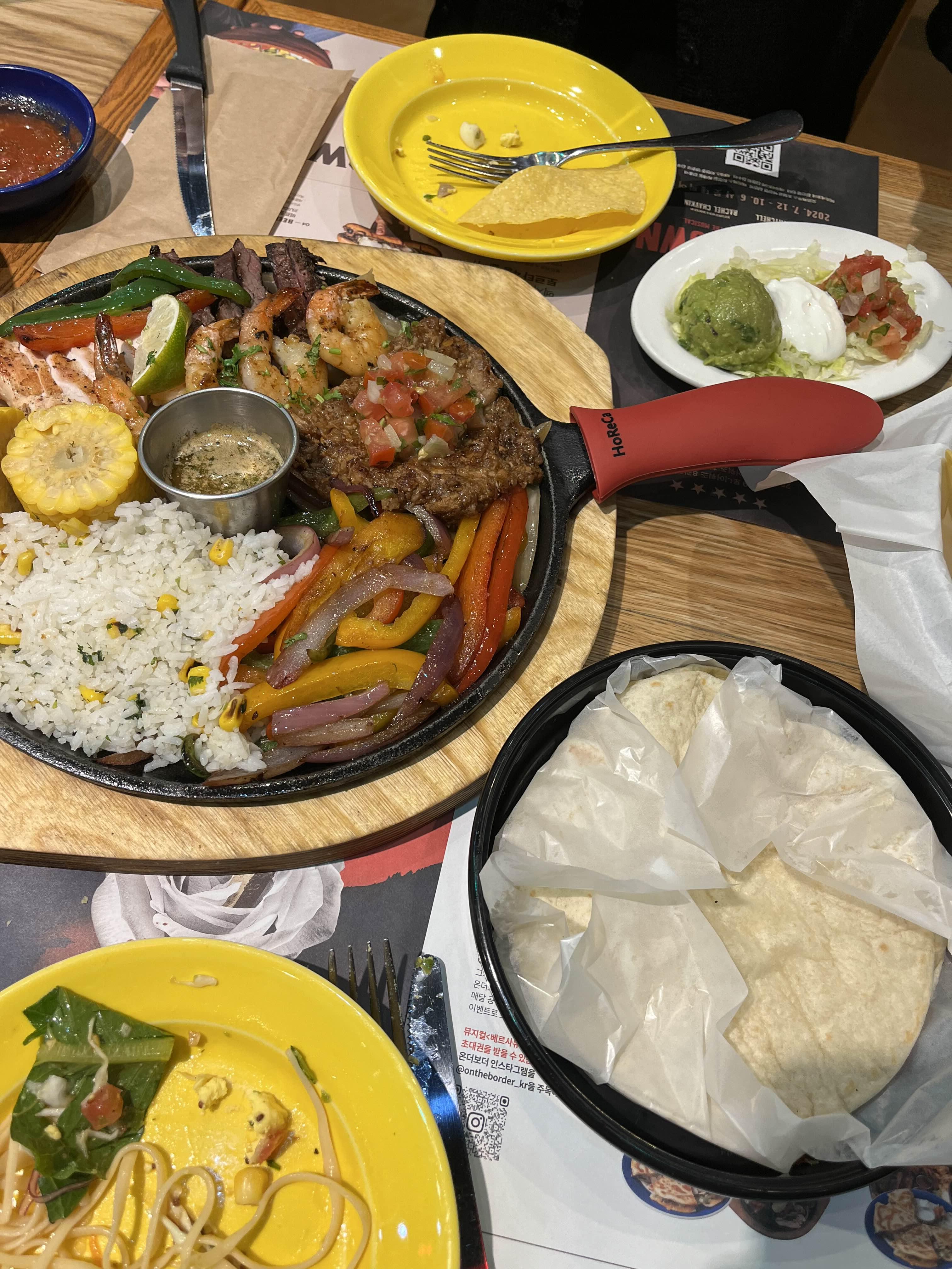 또띠야에다가 화이타에 있는 야채, 고기들을 싸서 먹는 건데 정말 맛있었다.