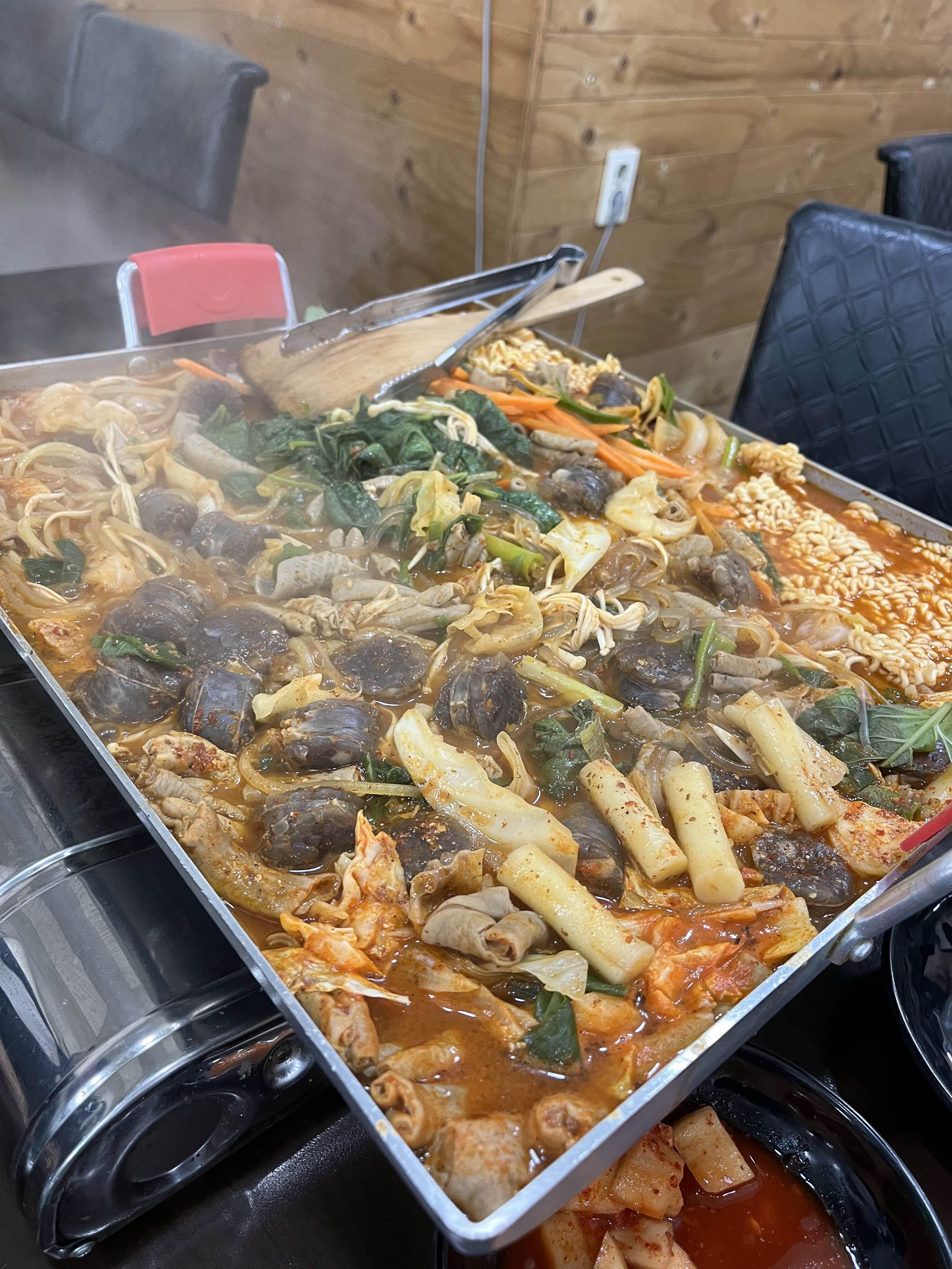 철판에 국물 자박하고 순대랑 곱창, 각종 면들이 듬뿍 올라가고 양이 엄청 많다.
