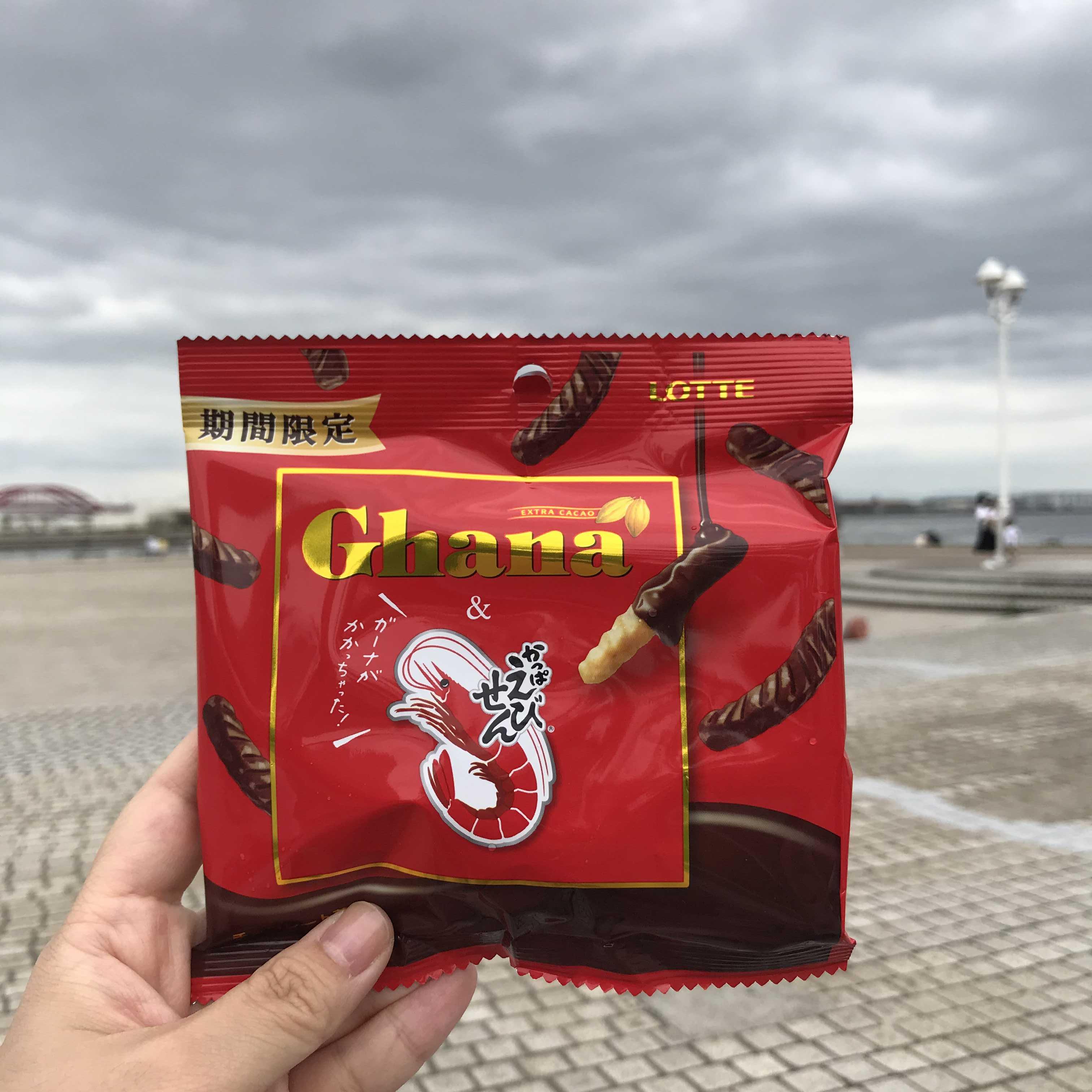 메리켄 파크 가는 길에 편의점에서 음료와 기간 한정으로 가나 초콜릿과 일본 새우깡이랑 콜라보한 과자를 팔길래 사봤다.