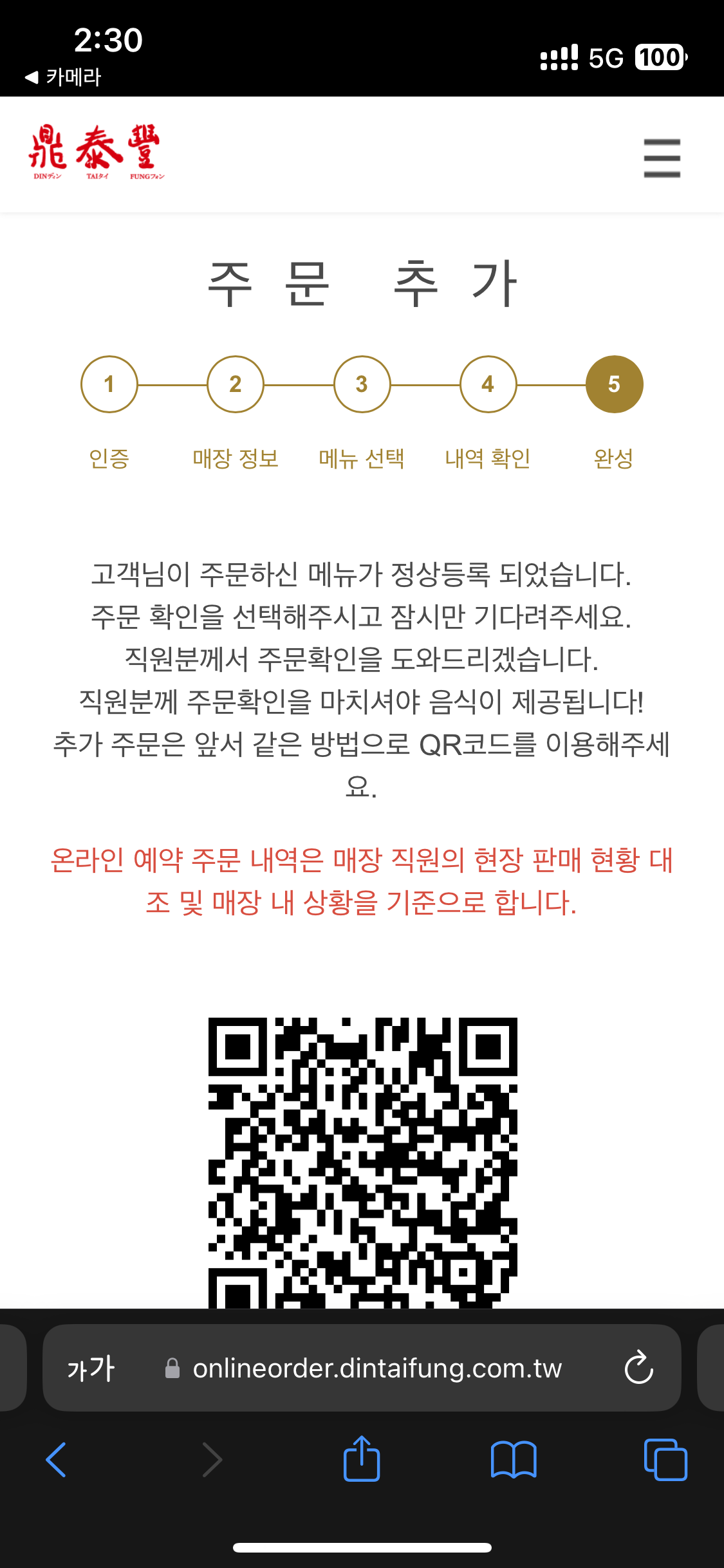추가 주문을 한다고 말하고 새로 큐알 코드를 받아야 한다.