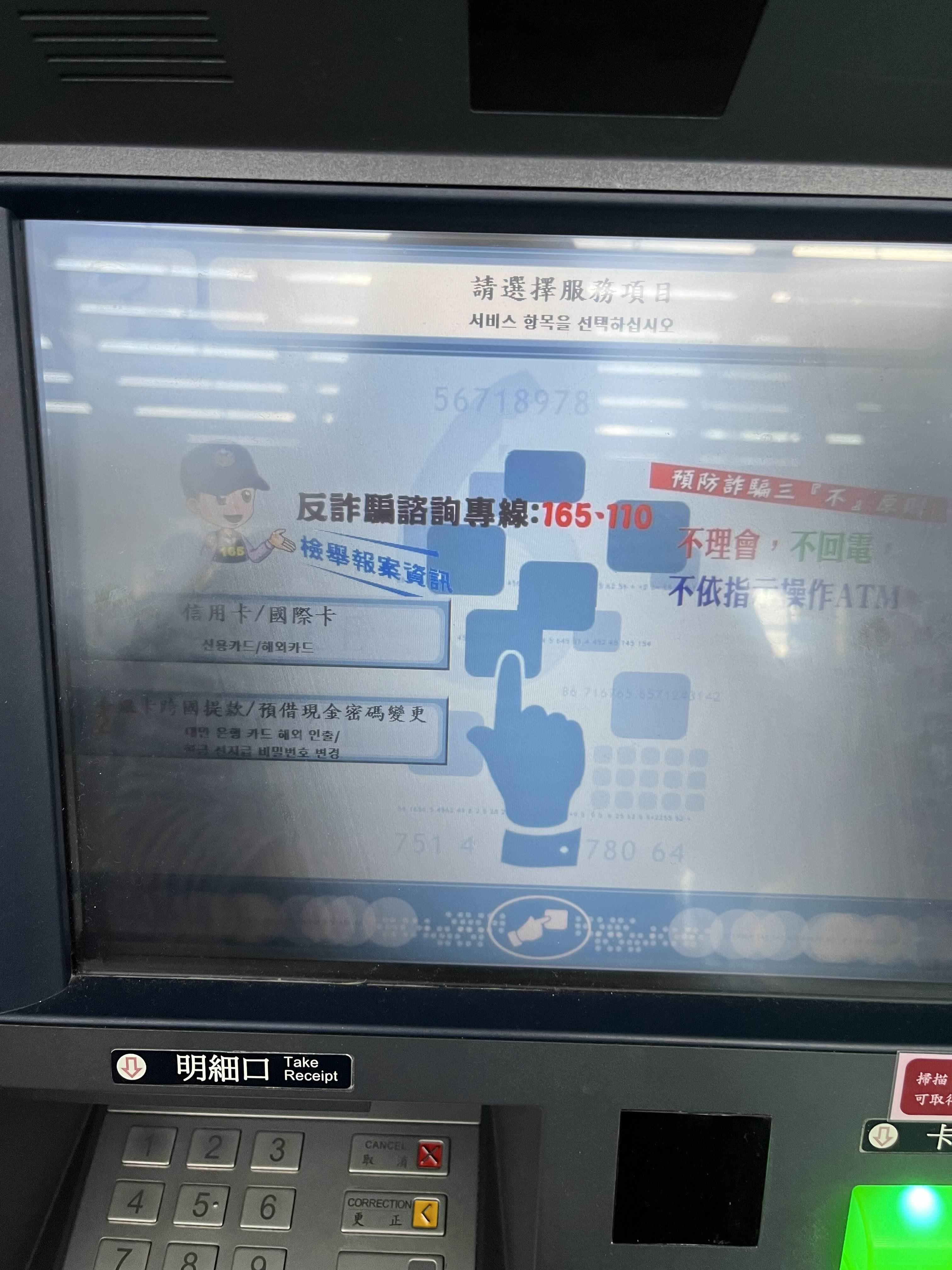 대만 타오위안공항의 대만은행 ATM기에서 출금을 했다.