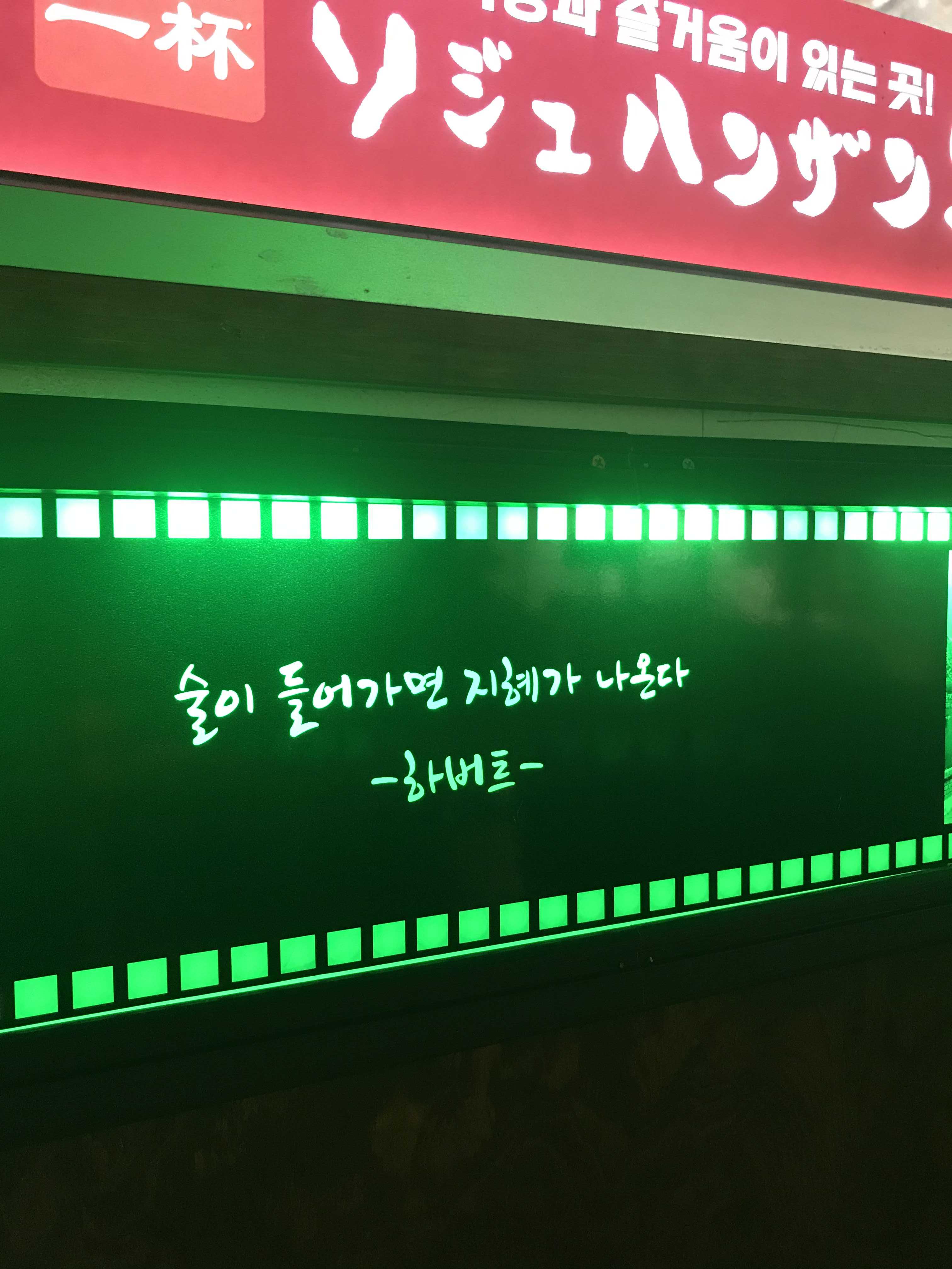 소주 느낌 퐁퐁 나는 인테리어. 재밌게 잘 해놓은 것 같다. 다시 또 가고 싶을 정도.