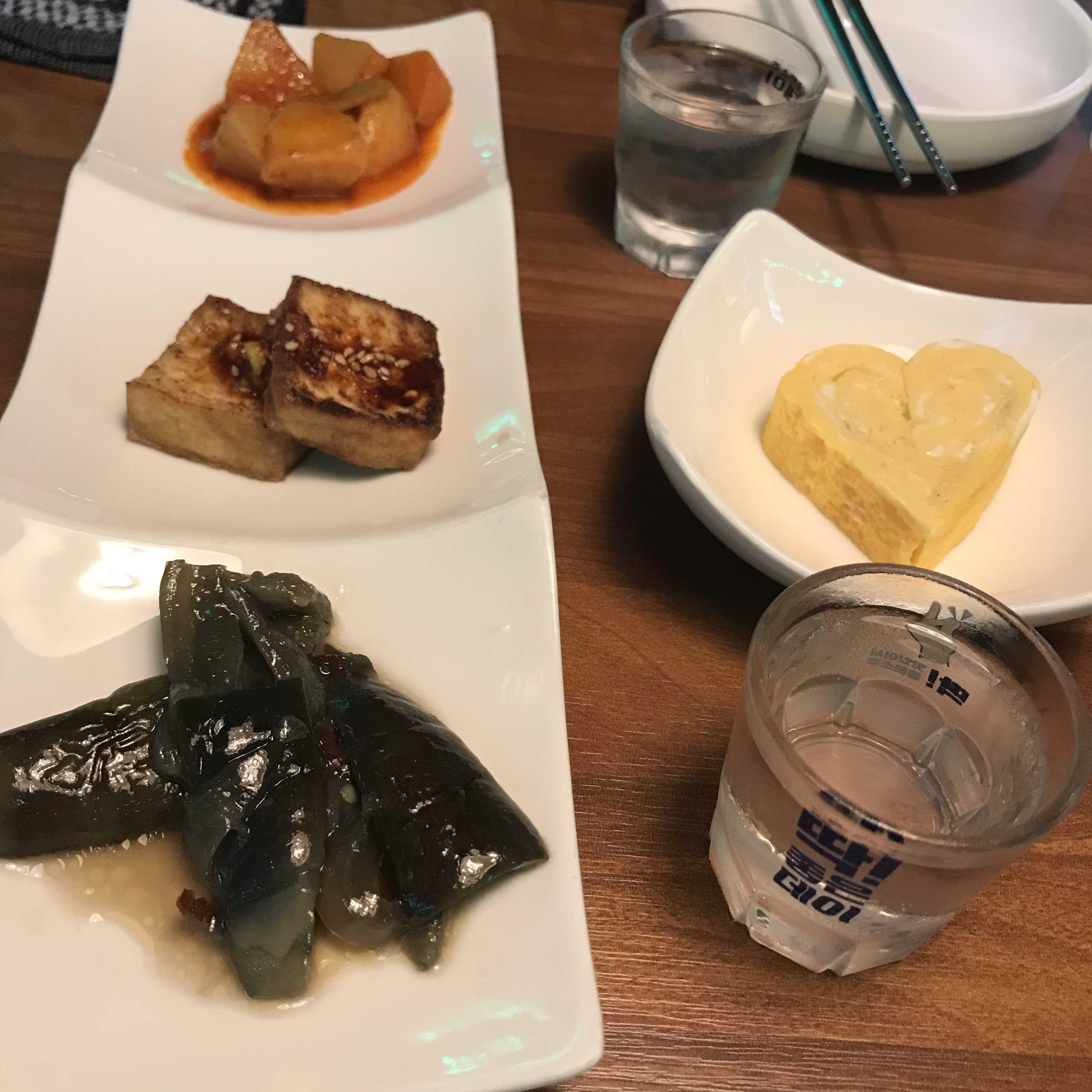 간단하게 먹을 수 있는 반찬이 나오는데, 계란말이가 하트 모양으로 나온다. 작은 거지만 이런 센스 넘 좋다. 반찬 맛은 평범하지만 맛있었고, 아마 저녁에는 자리값도 받는 듯 했다. 그런건 일본식.
