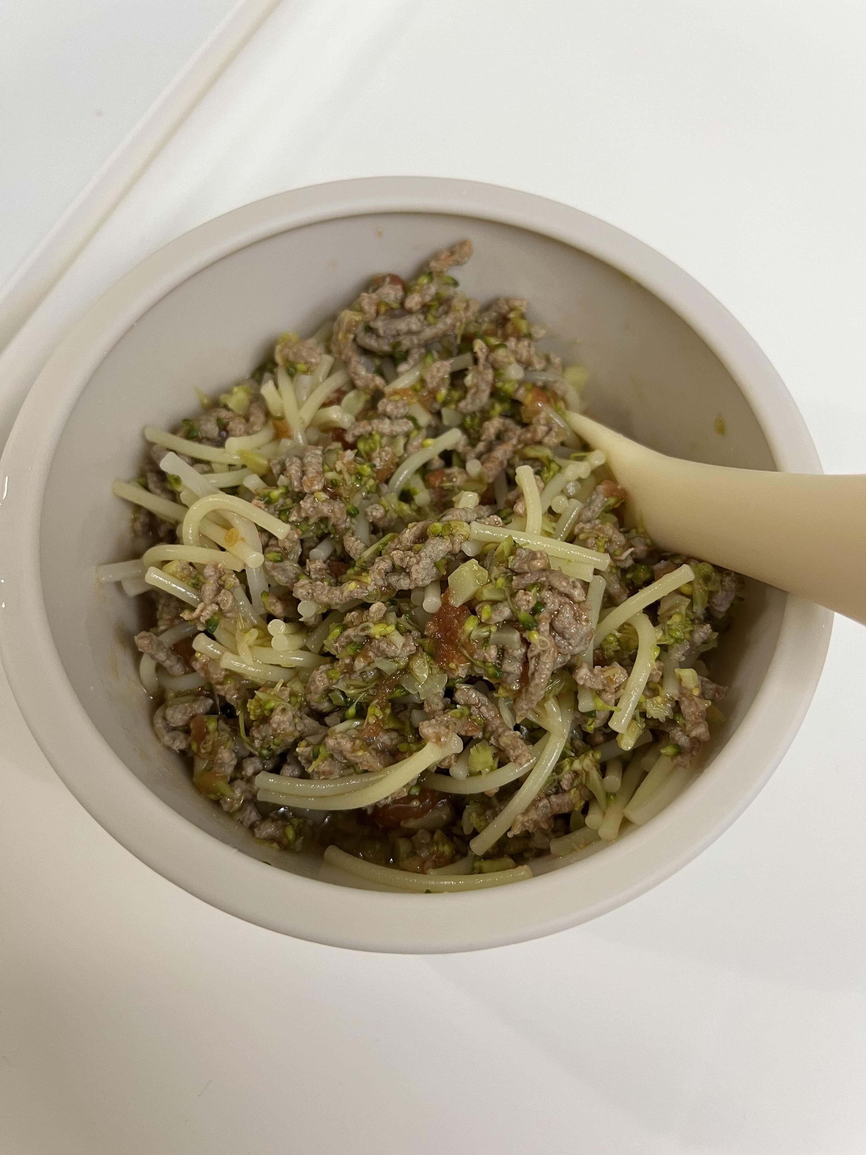 동네 야키니꾸 가게에 아기 밥 가져가서 먹여도 된다고 하셔서 아기용 라구파스타를 만들어서 먹였다.