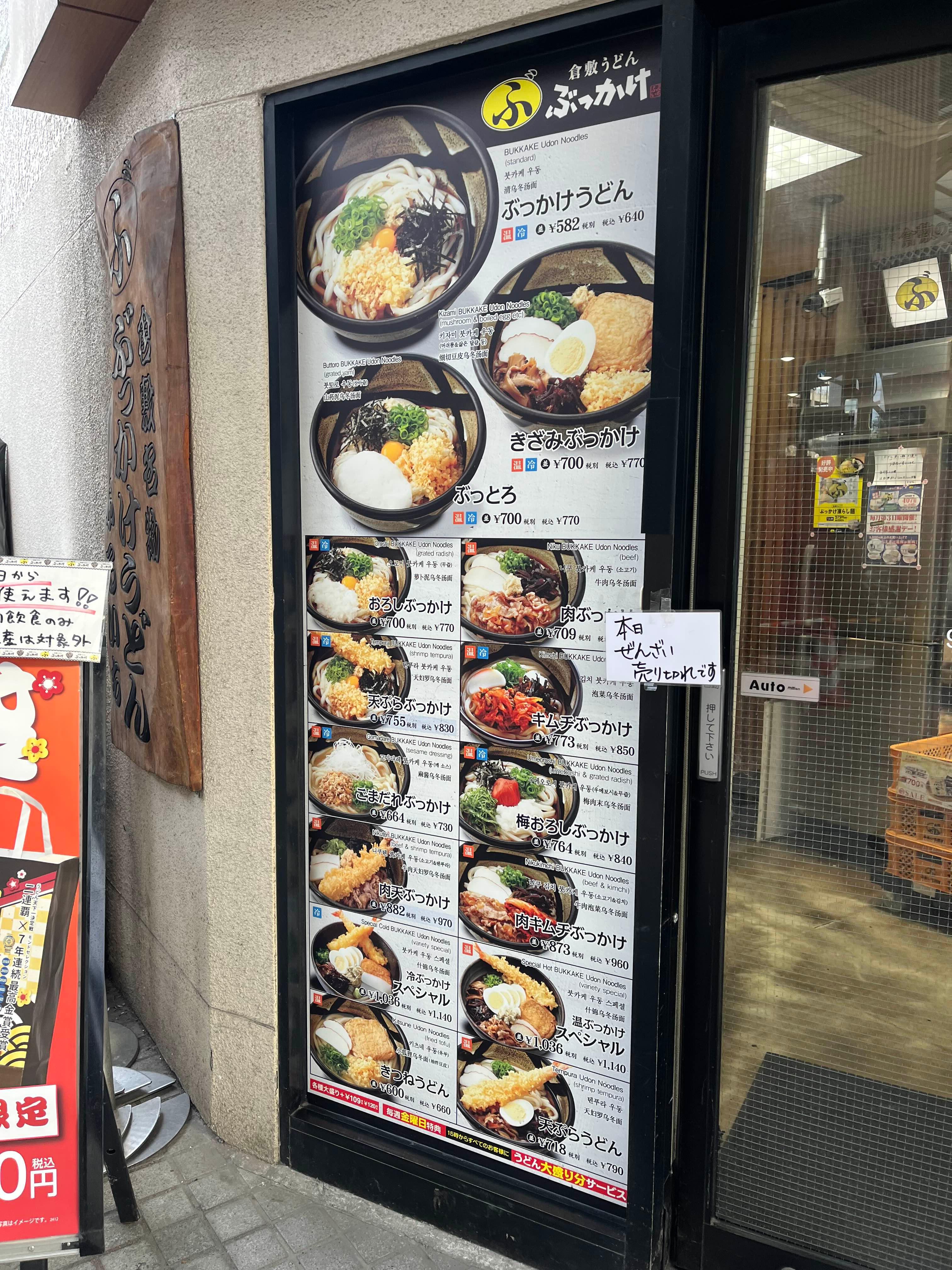 붓카케 우동 후루이치 메뉴