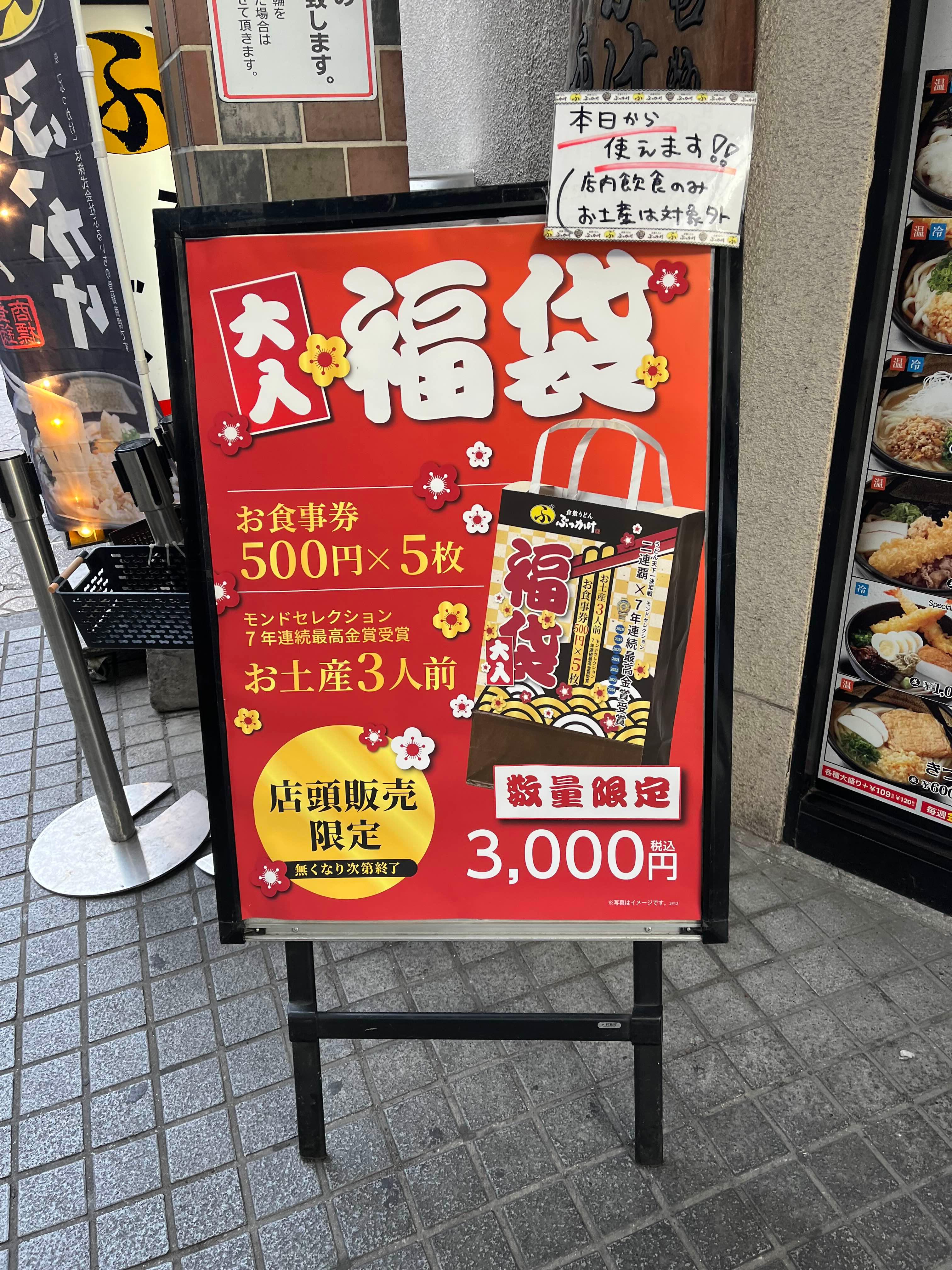 붓카케 우동 후루이치의 복주머니도 3천엔에 팔고 있었다