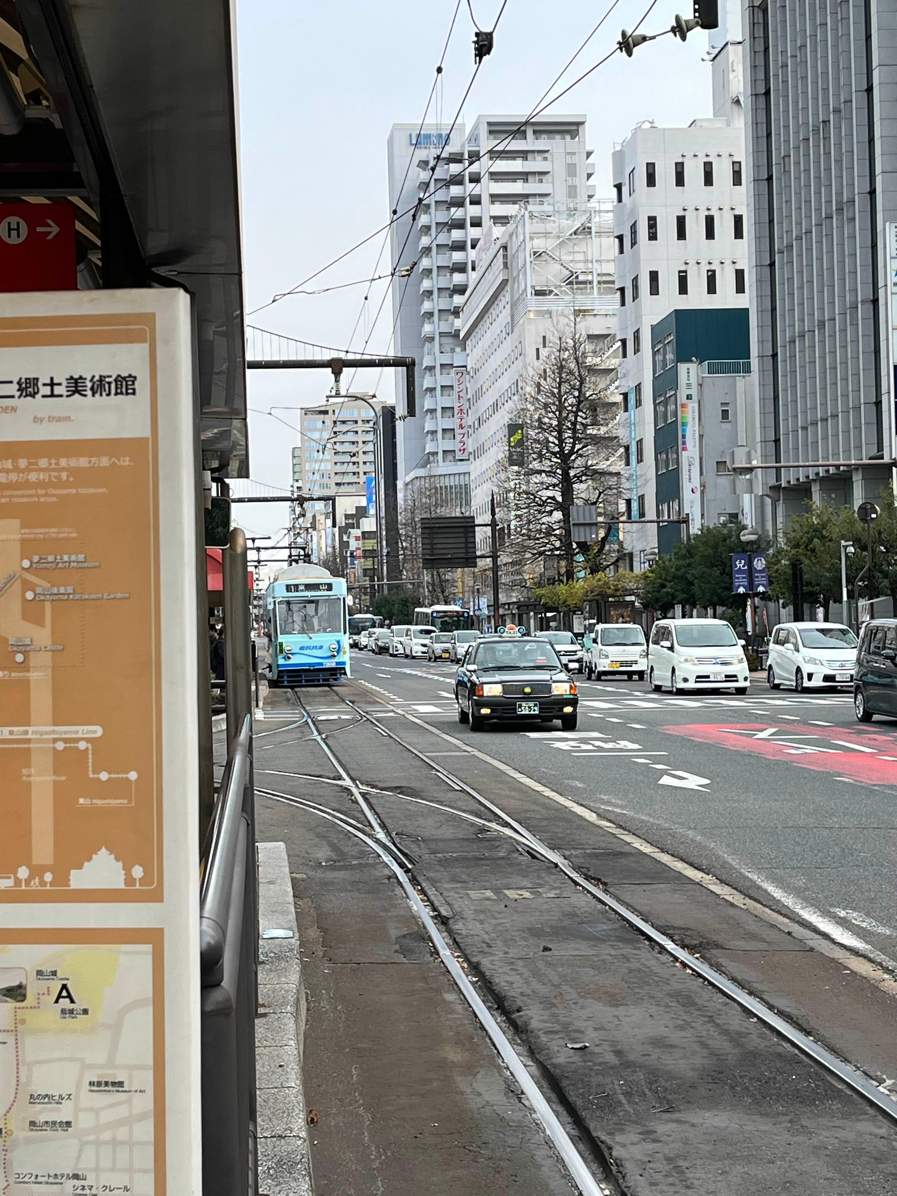 오카야마에는 노면전차가 있어서 타보기로 결정했당!!