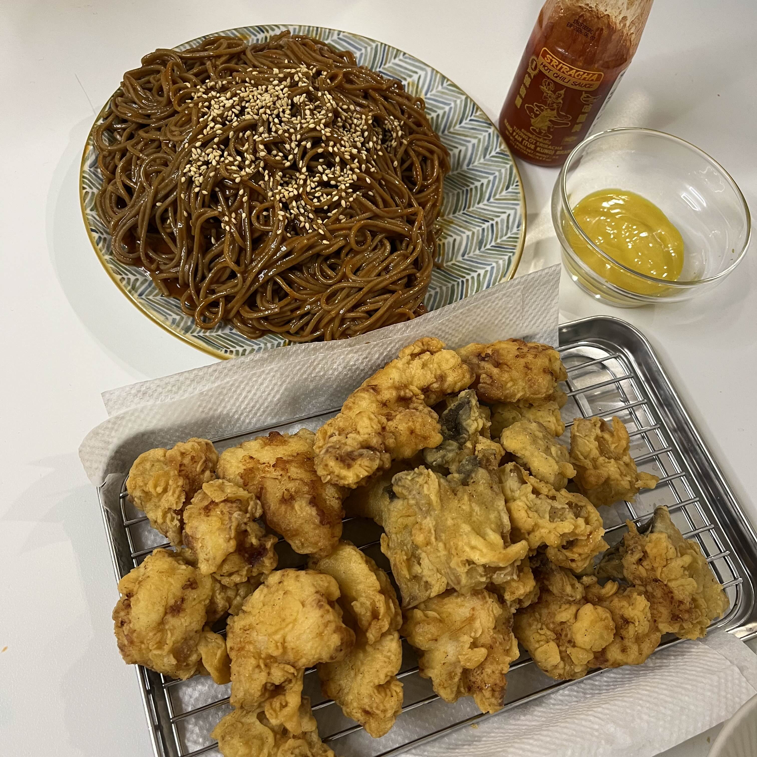 맛있게 먹었다 막국수처럼 소바 삶아서 비벼서 같이 먹었다.