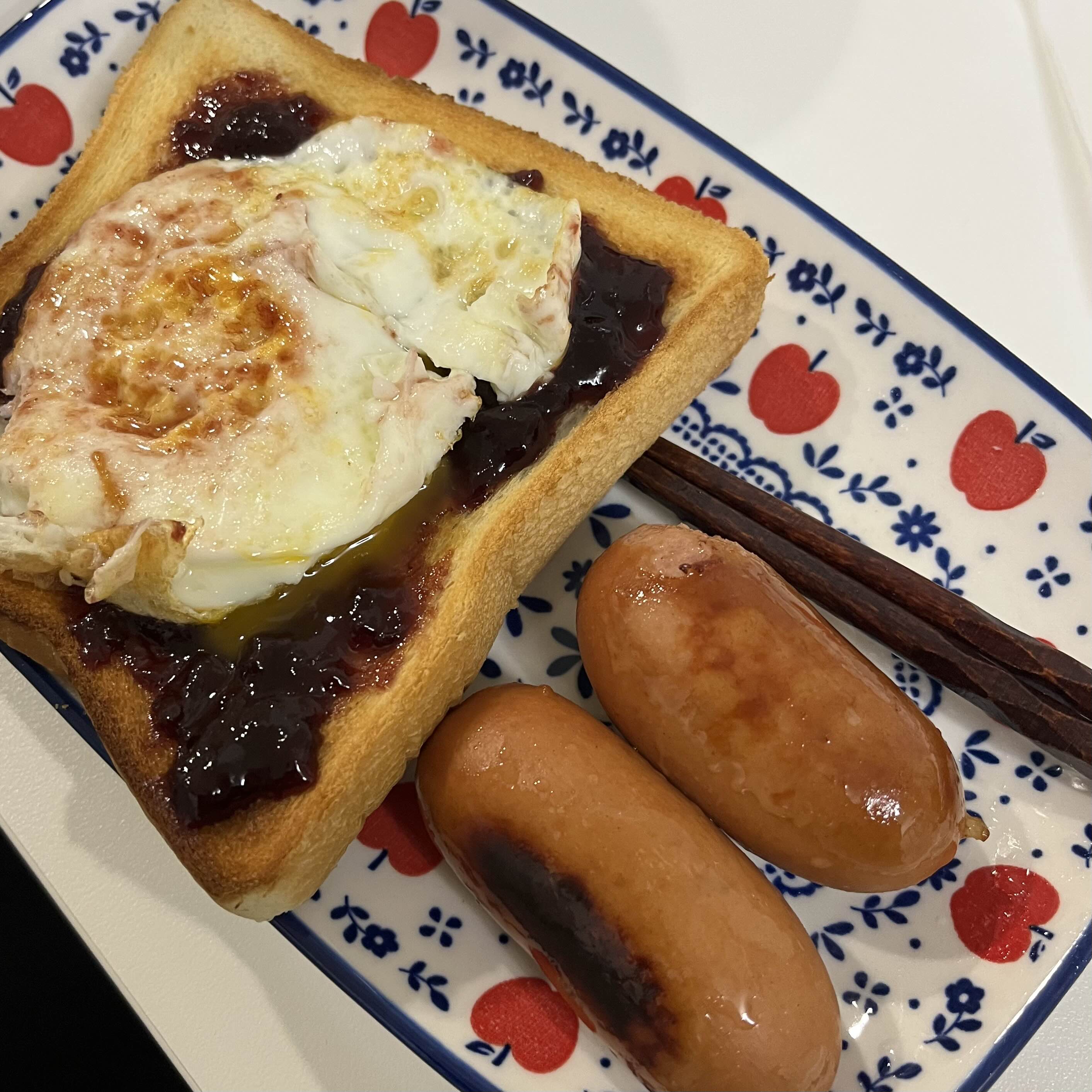 식빵 구워서 빵이랑 계란후라이 올려 소시지랑