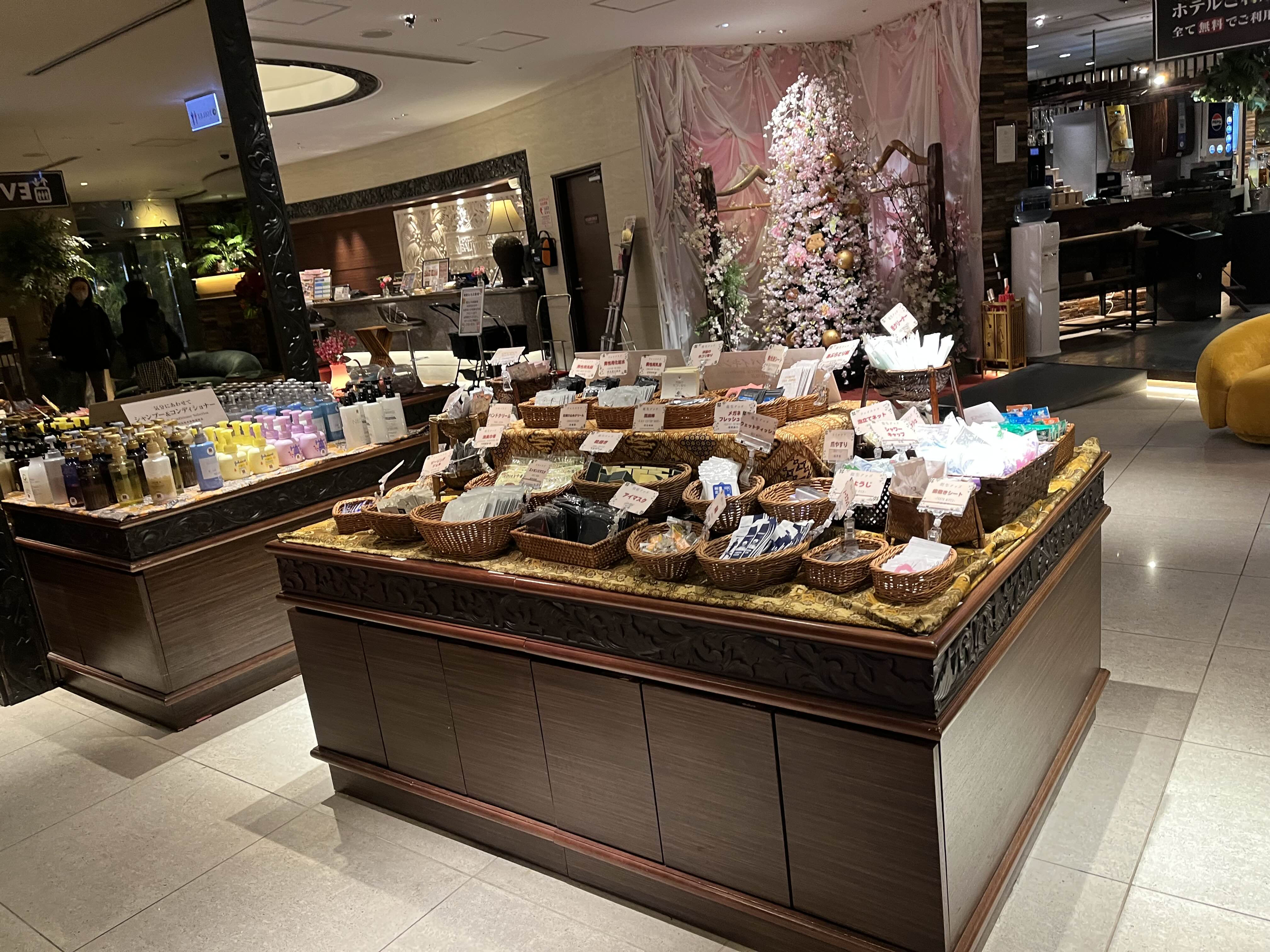 체크인 데스크 바로 앞에 있는 어메니티 뷔페가 있는데